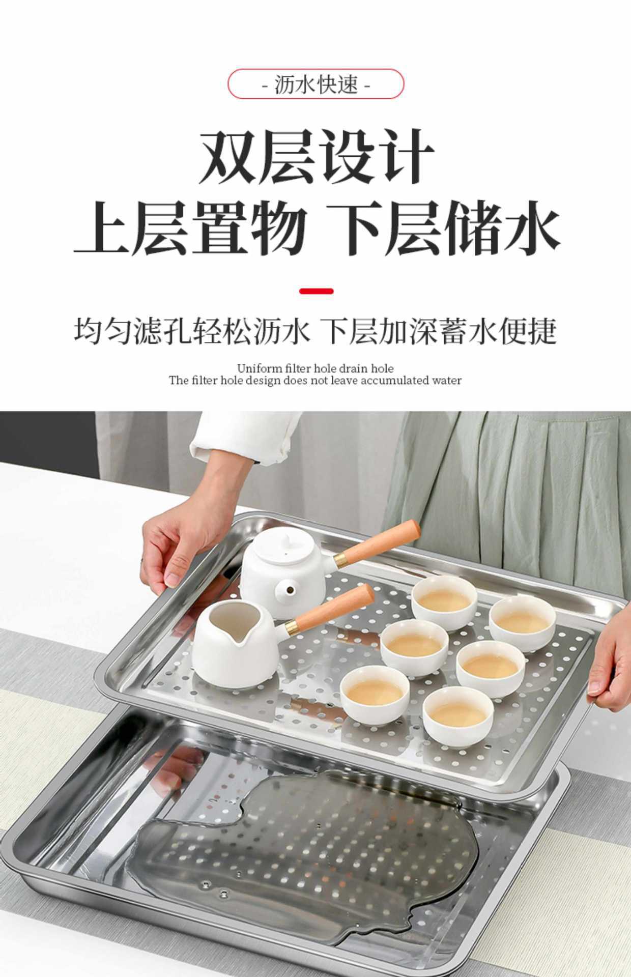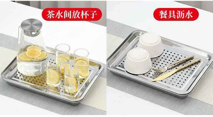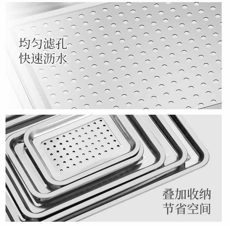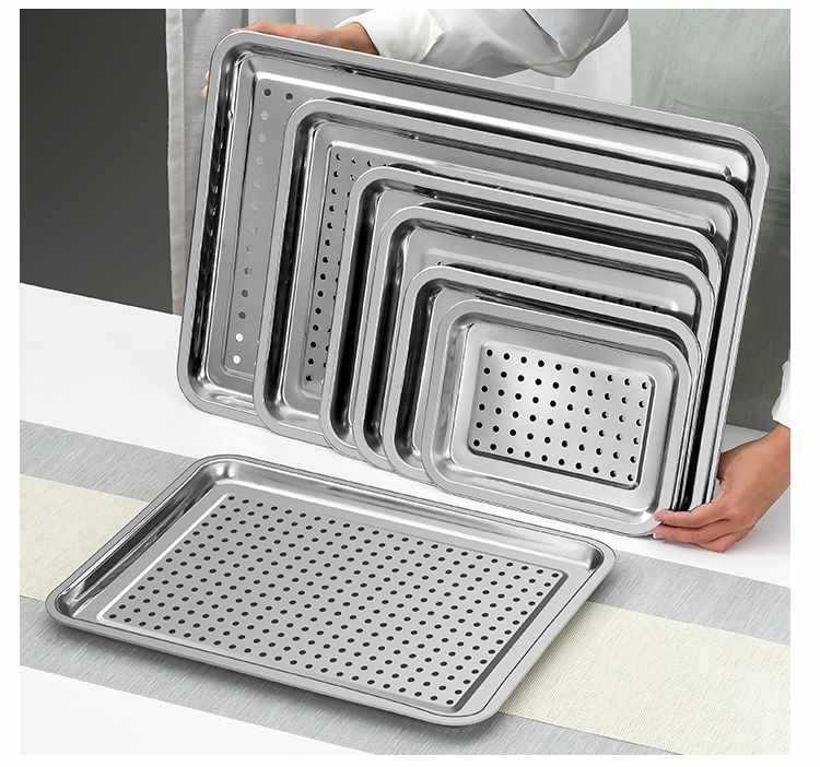 스테인레스 스틸 직사각형 트레이 티 트레이 구멍 김이 판 사각 판 김이 판 캐비닛 김이 나는 자동차 김이 나는 상자 바베큐 접시스토어 가기