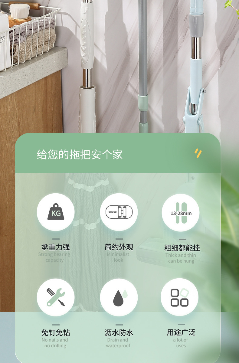 걸레 후크 행거 비 천공 벽 매달려 화장실 걸레 저장 랙 비스코스 강한 고정 버클 빗자루 클립