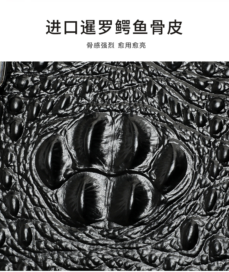 • 악어 가로형 토트백 블랙 사각 버클 더블 지퍼