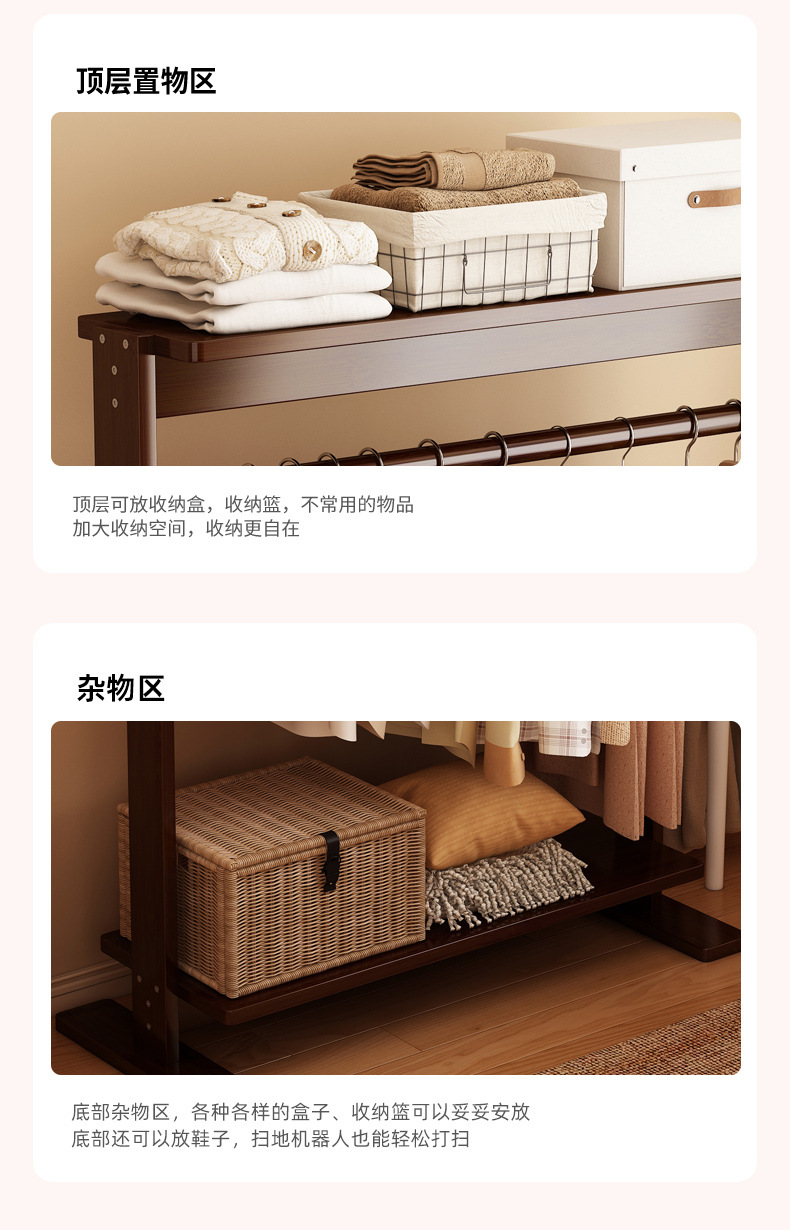 • 업그레이드 된 두꺼운-다기능 코트 랙 호두 컬러 100 롱 [클래식]