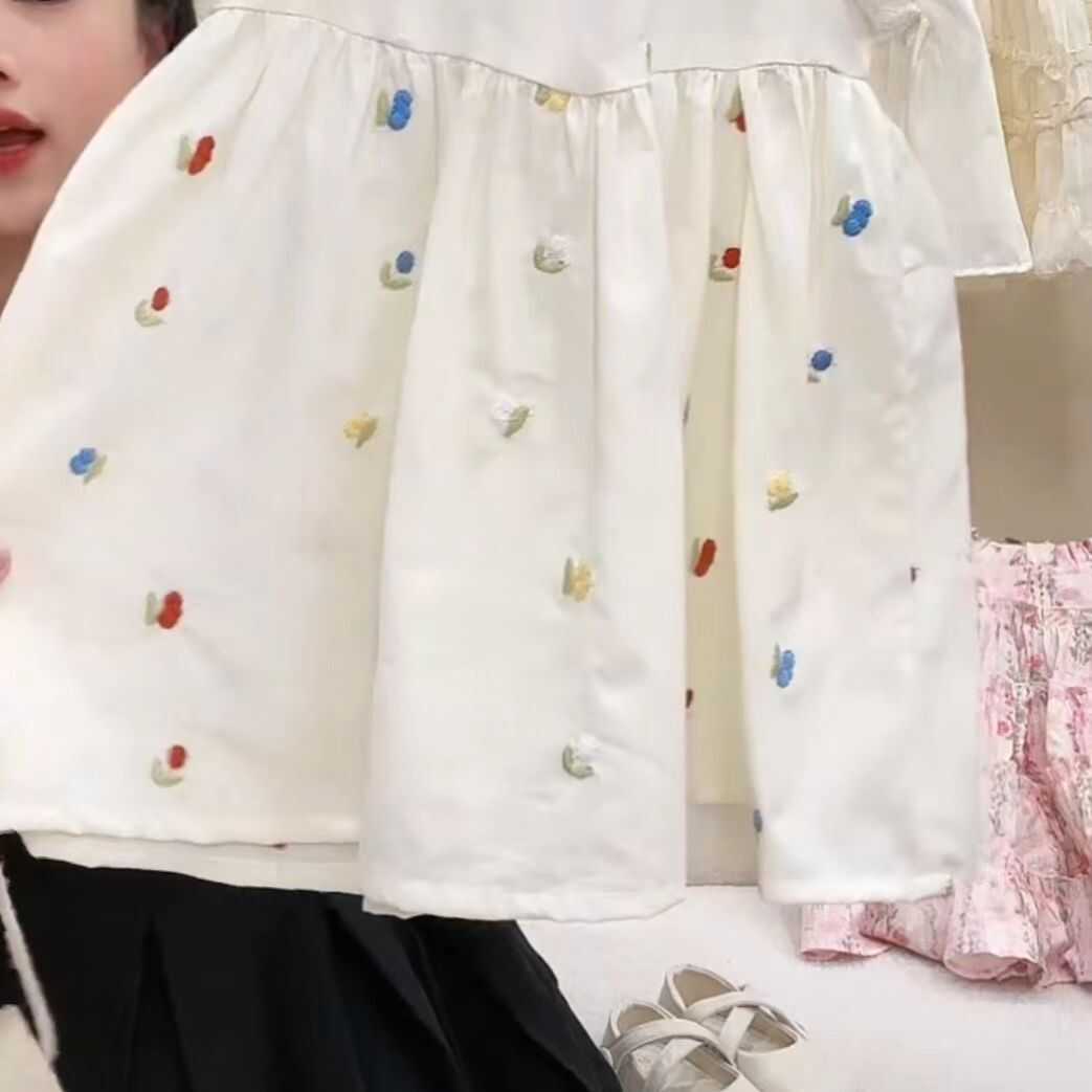 소녀 레이스 칼라 원피스 여름 새로운 달콤한 공주 원피스 컬러 자수 코튼 원피스 화이트 원피스 여름스토어 가기