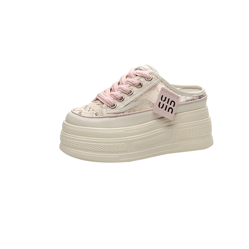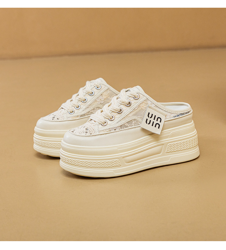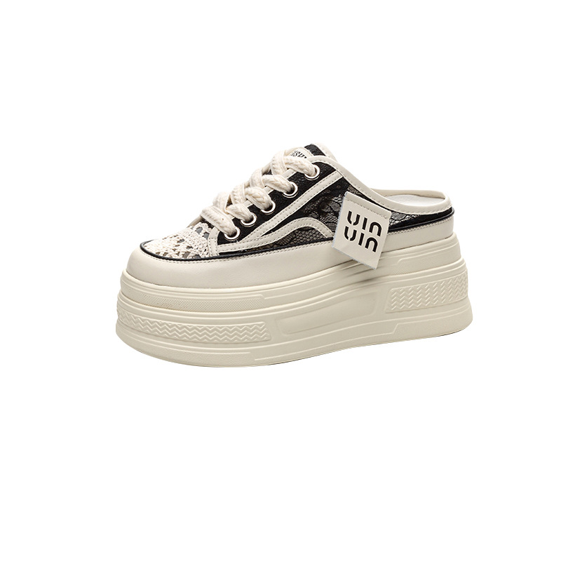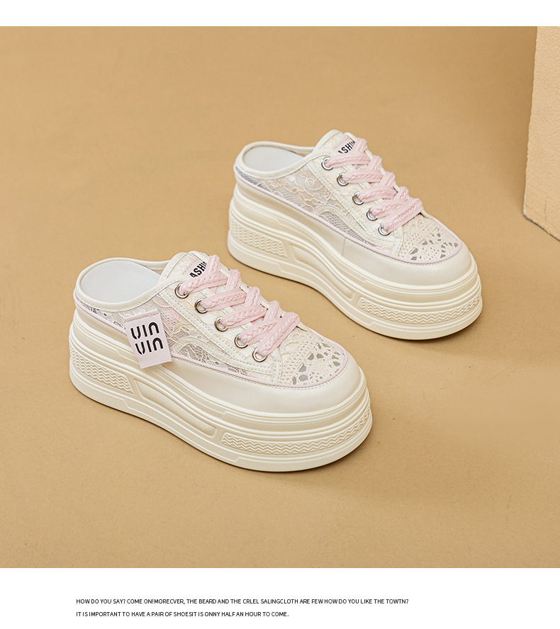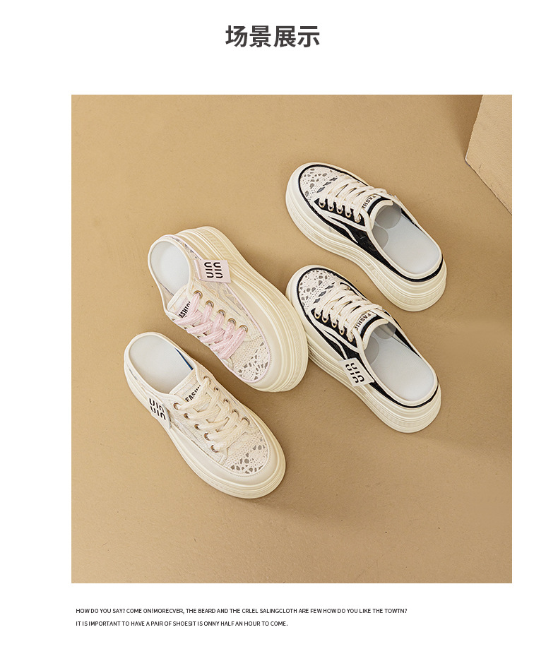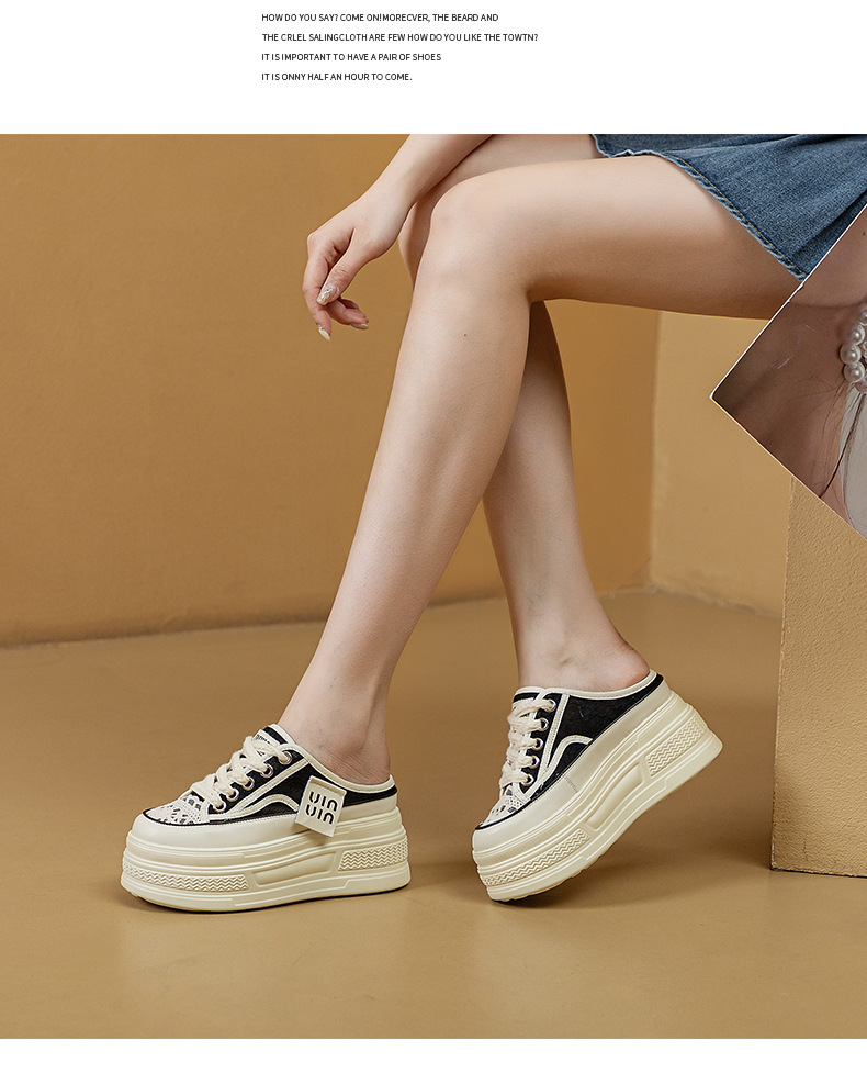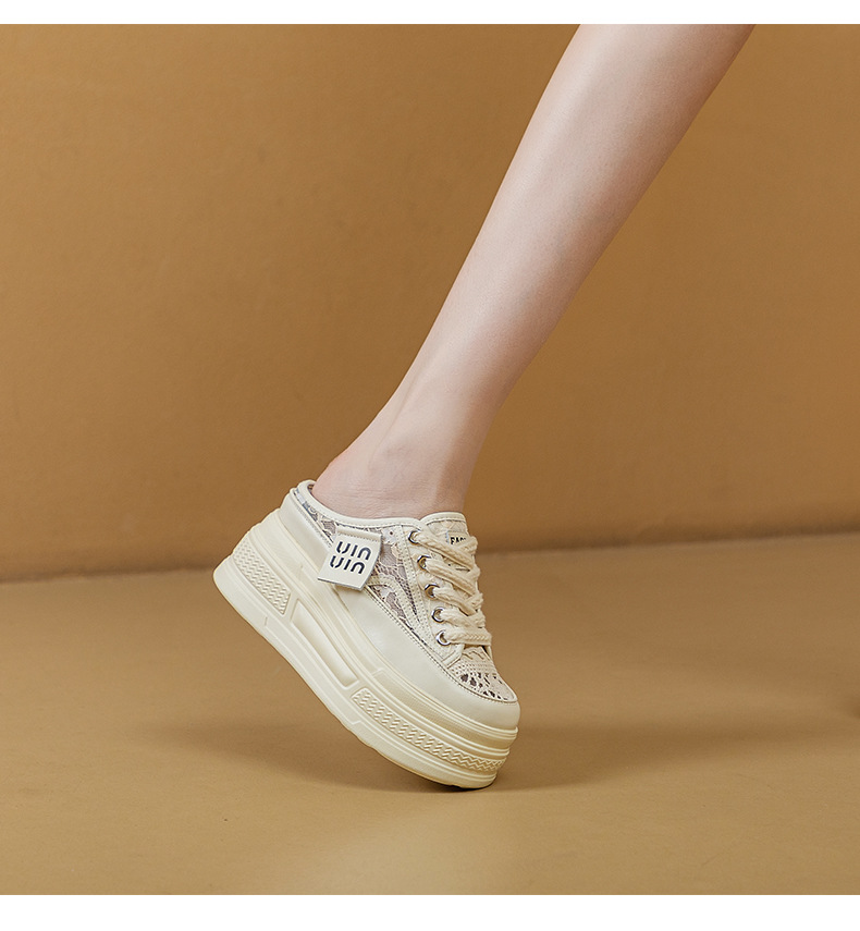 2024 년 여름 새로운 도착 반 토우 가죽 중공 작은 신발 두꺼운 단독 웨지 캐주얼 샌들 학생 신발 여성 신발