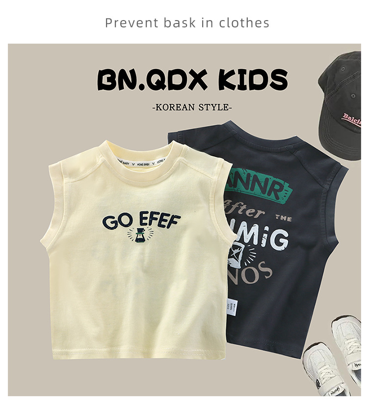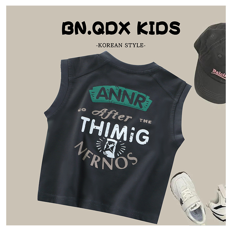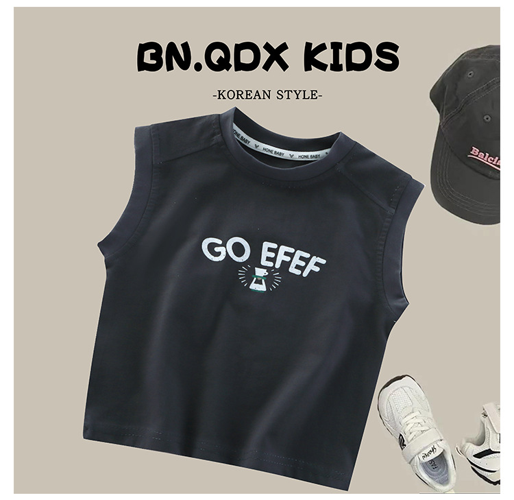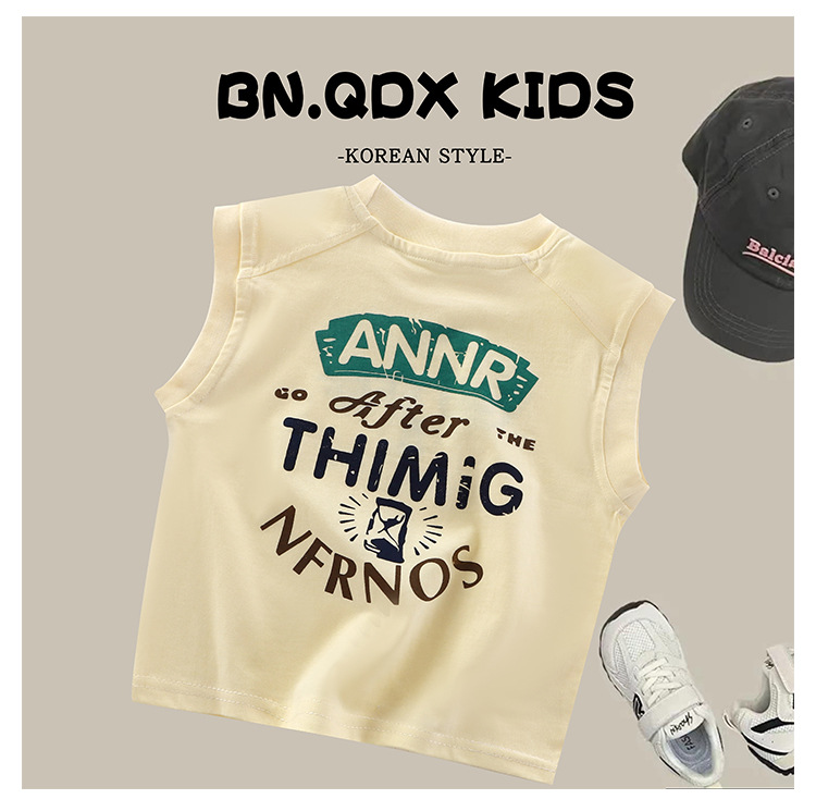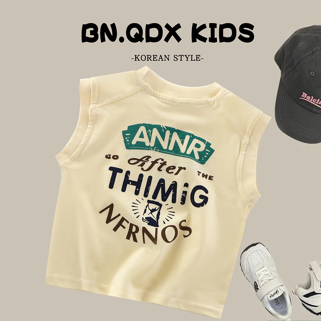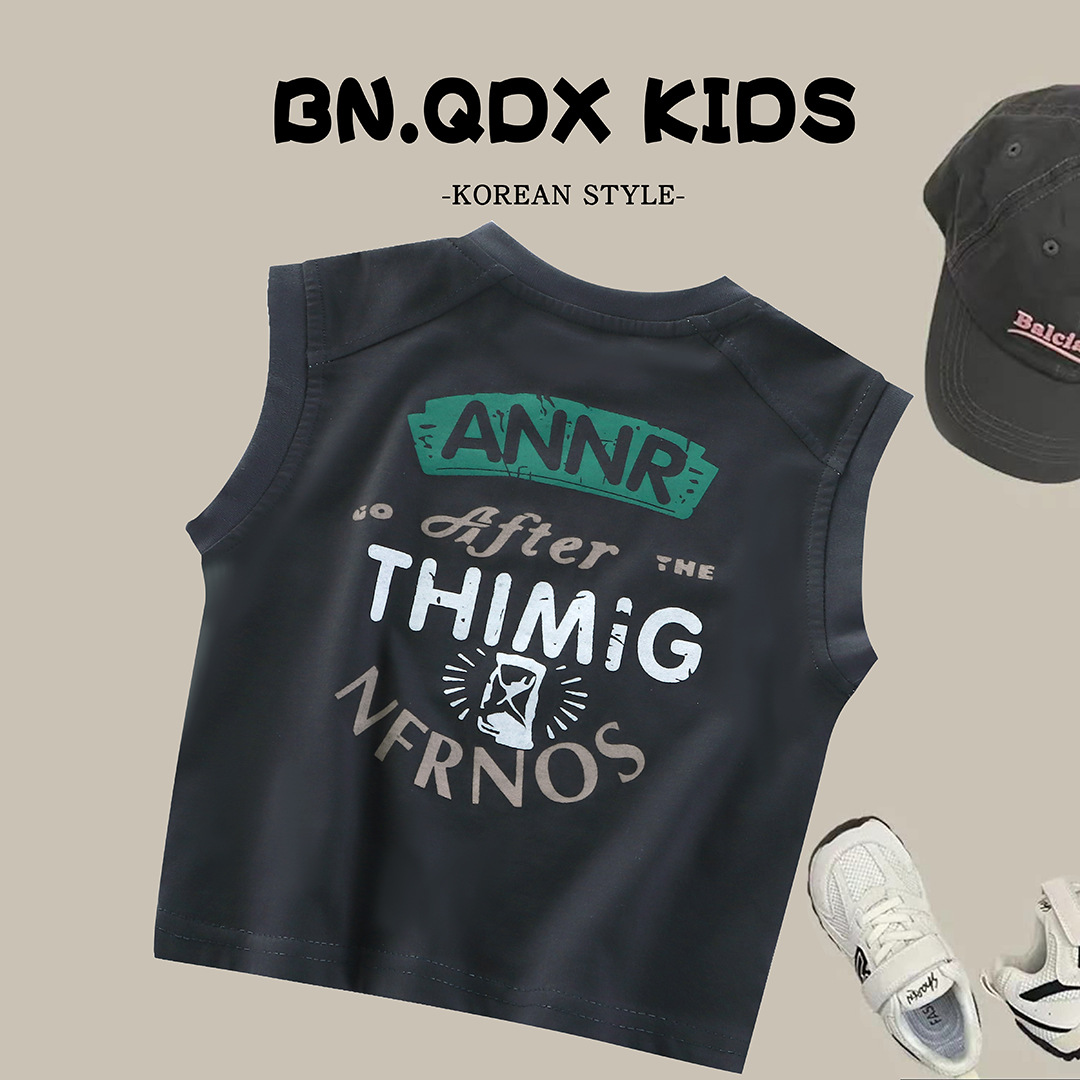 [2024] 여름 새 아동면 한국 티셔츠 큰 소년 소녀 아기 민소매 조끼 티셔츠스토어 가기