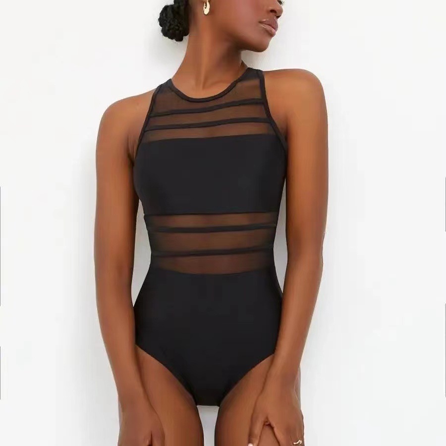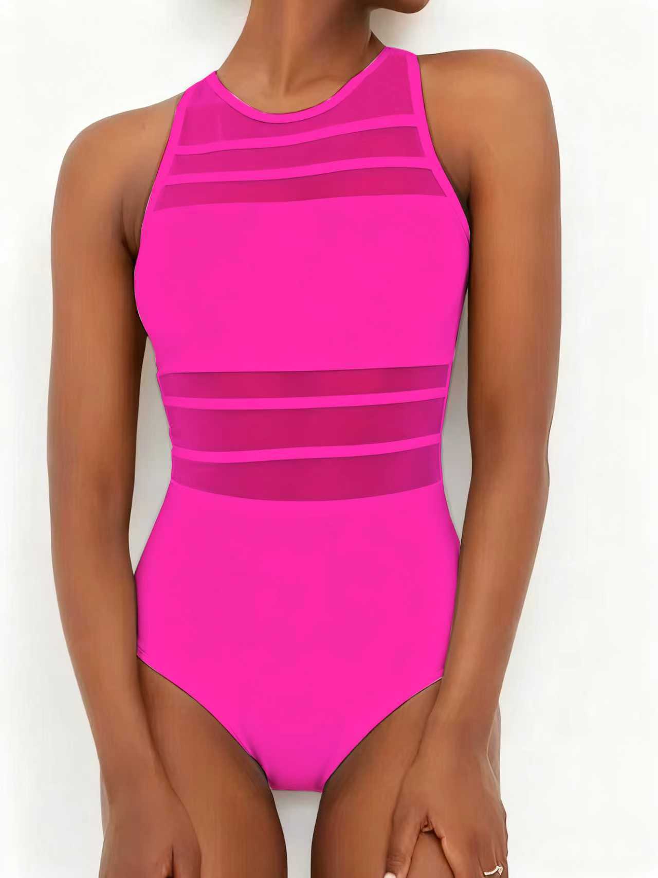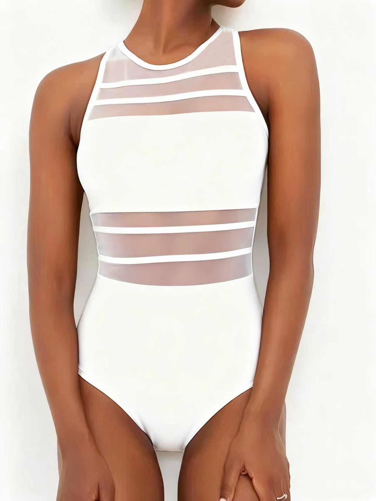 2024 국경을 넘는 새로운 유럽과 미국의 패션 섹시 백리스 솔리드 컬러 메쉬 스티칭 슬림 살 커버 여성용 수영복스토어 가기