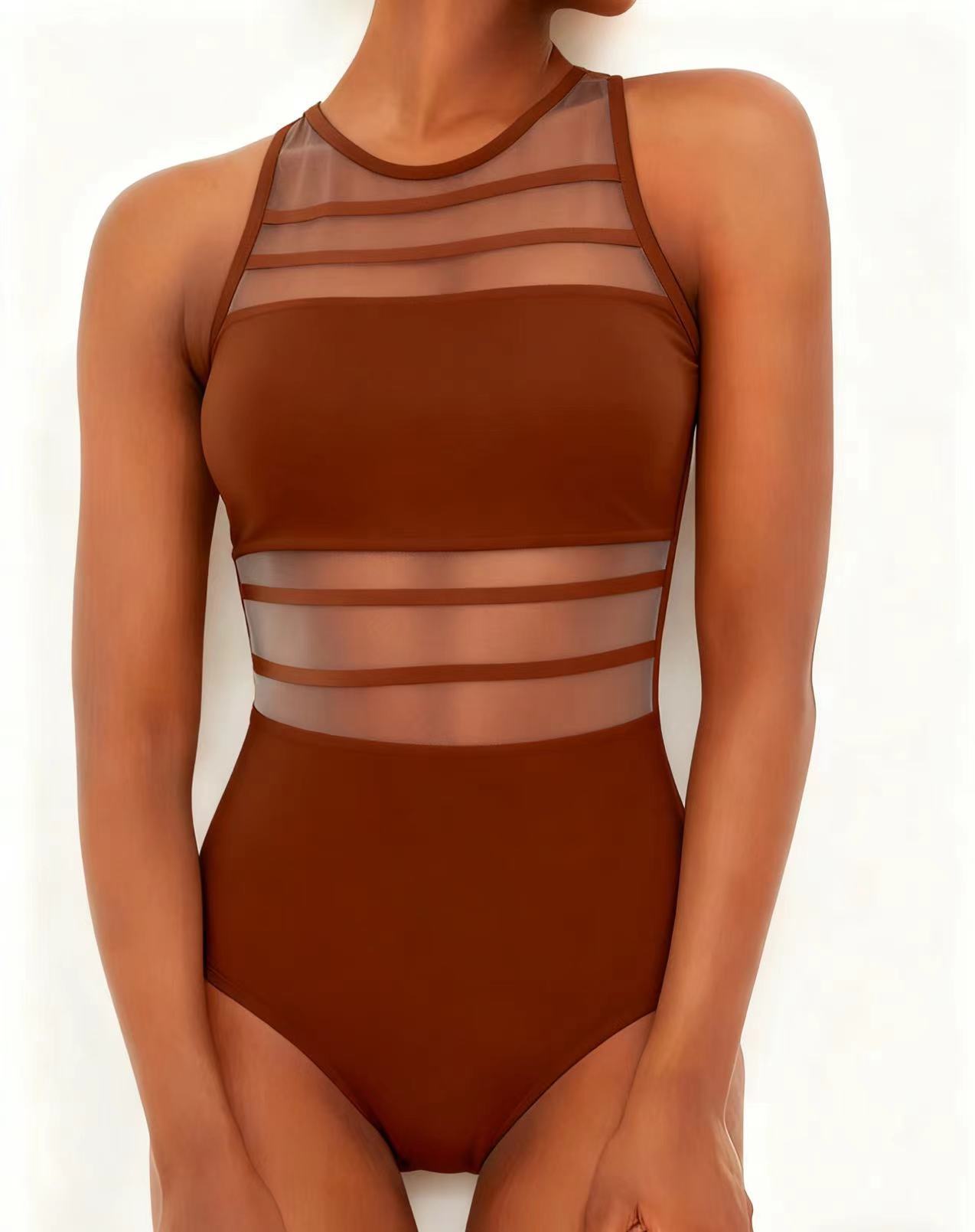 2024 국경을 넘는 새로운 유럽과 미국의 패션 섹시 백리스 솔리드 컬러 메쉬 스티칭 슬림 살 커버 여성용 수영복