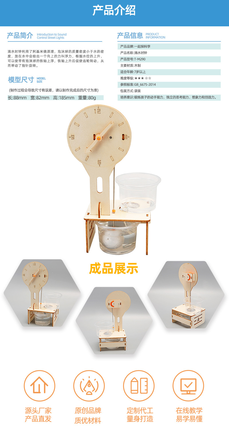 과학 기술 작은 생산 diy 드립 시계 수제 재료 어린이 과학 실험 초등학생 재미있는 과학 및 교육 장비스토어 가기