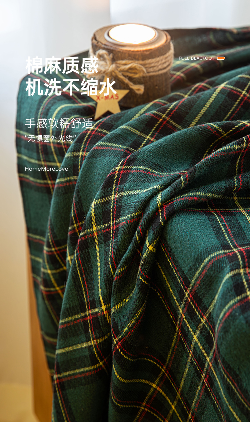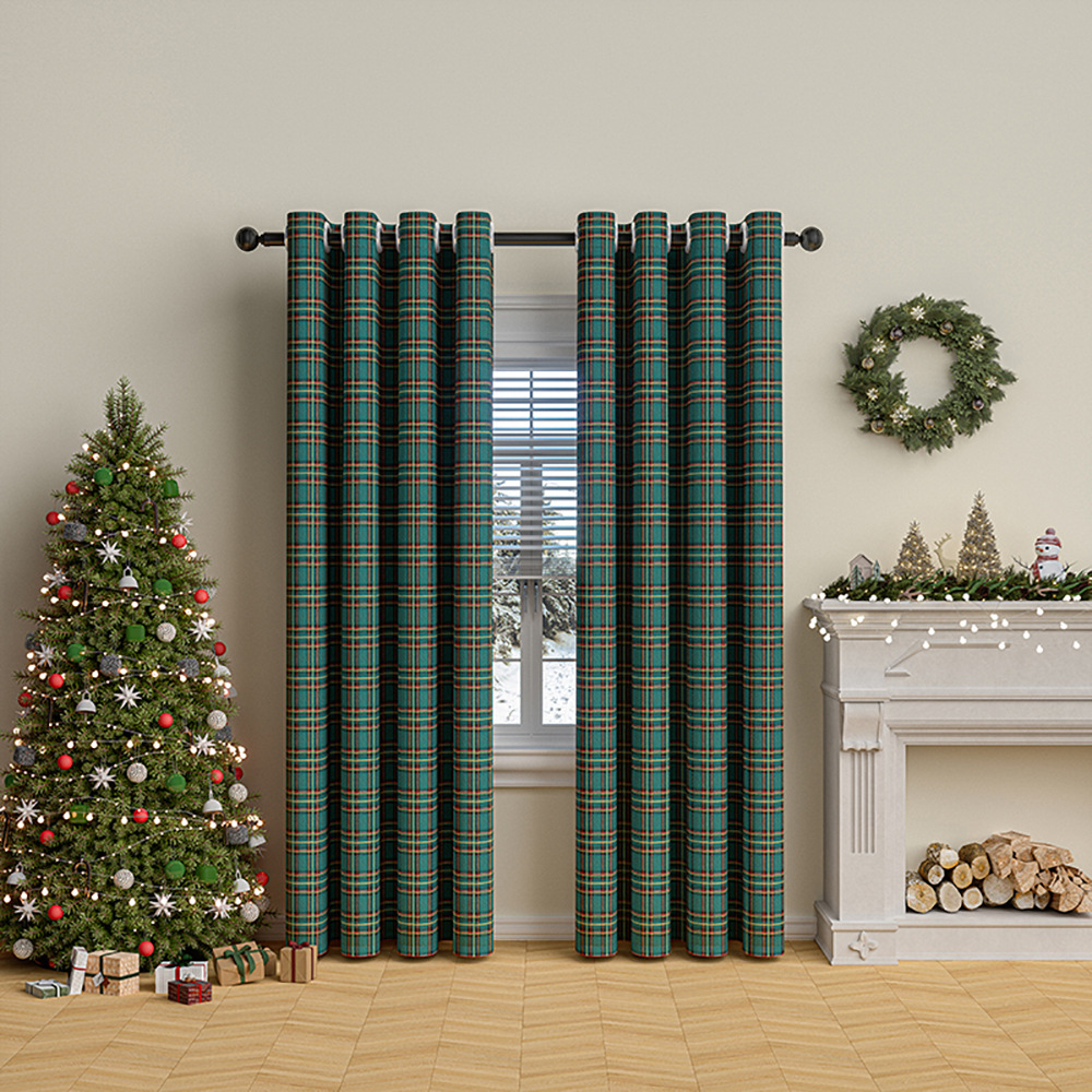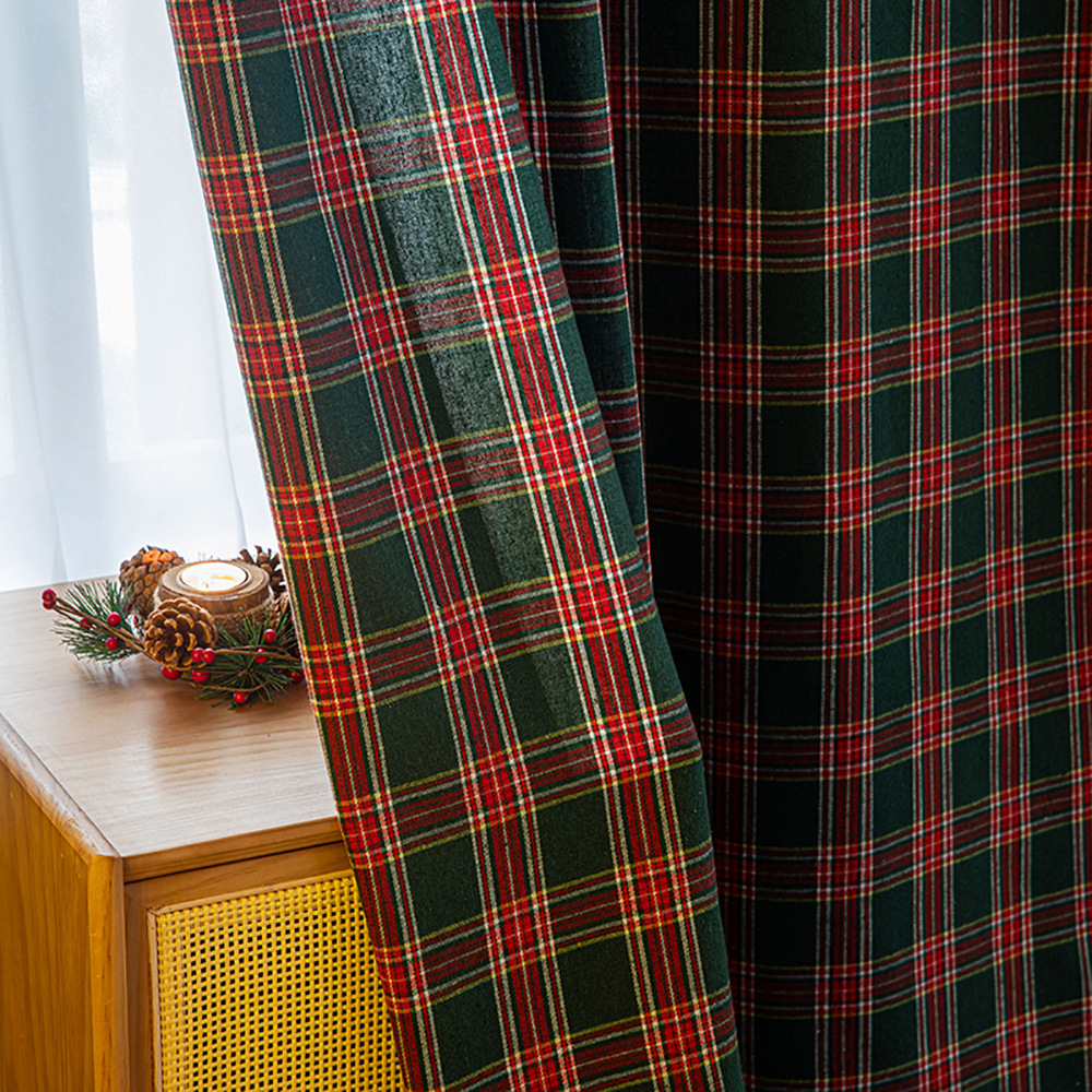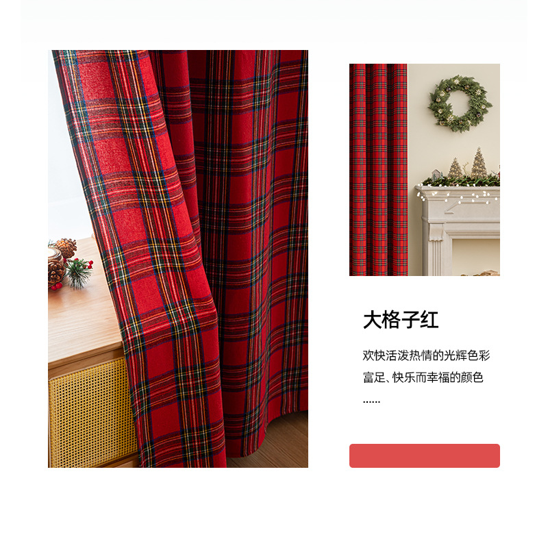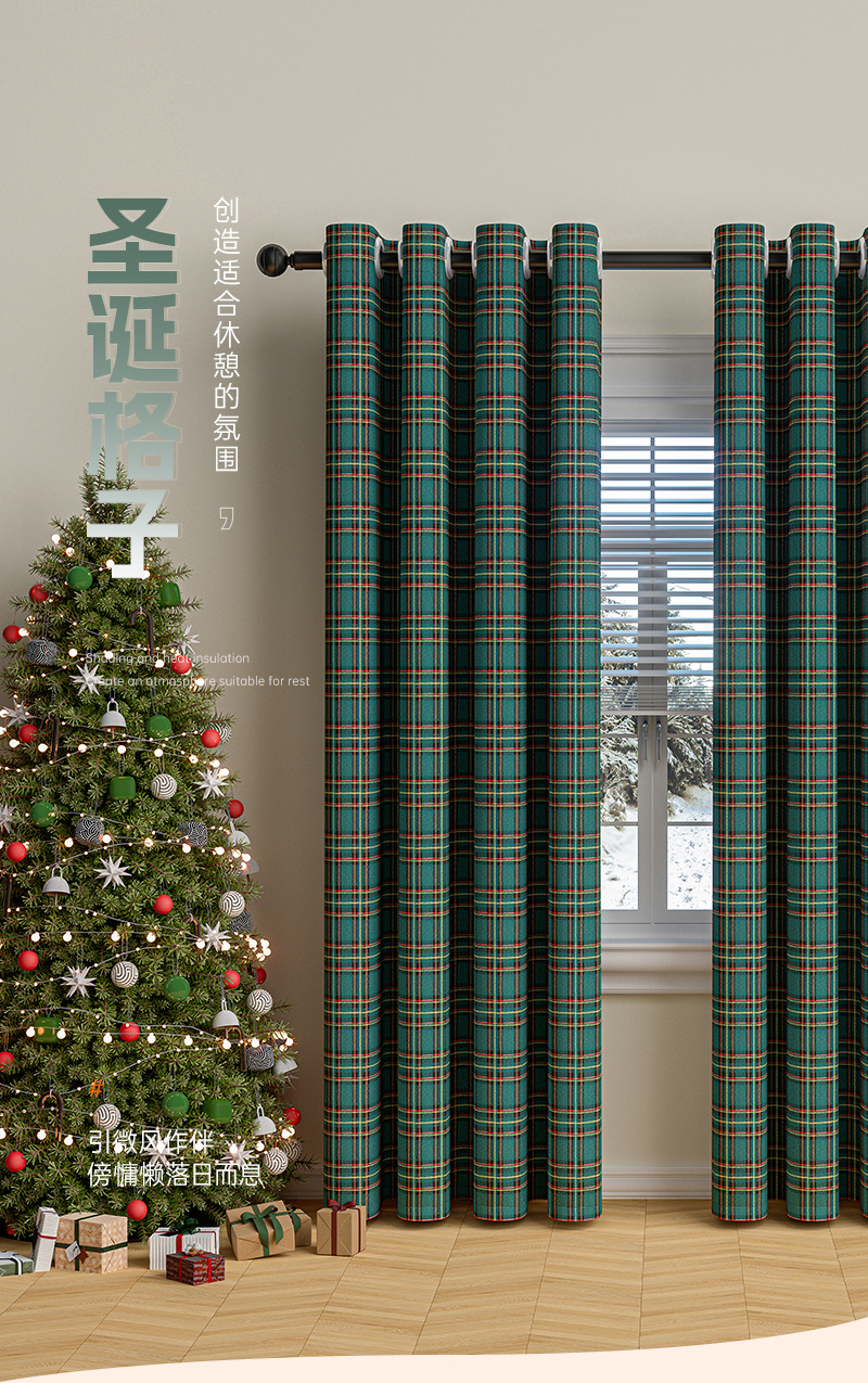 크리스마스 격자 무늬 커튼 미국 휴일 축하 장식 눈송이 모피 공 크리스마스 거실 반 음영 커튼스토어 가기