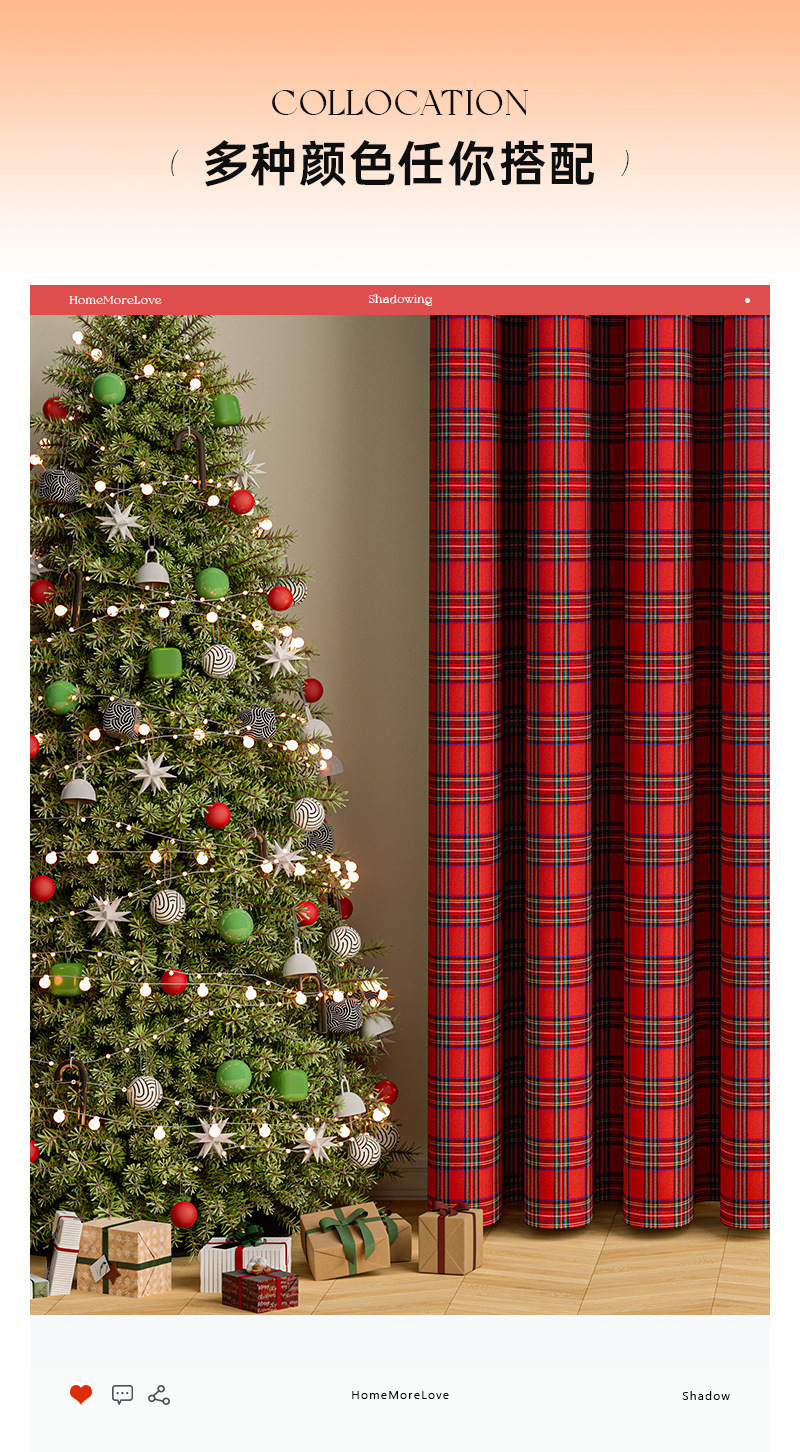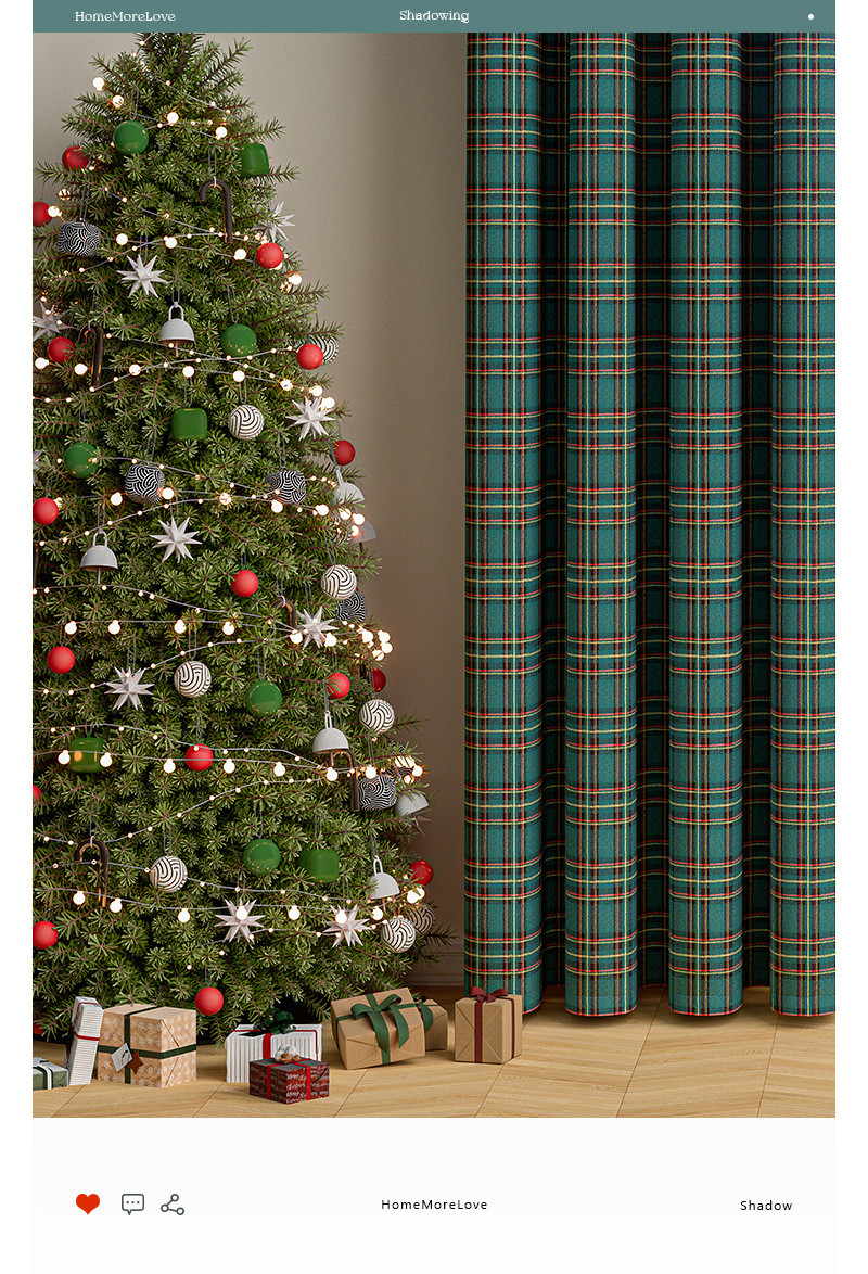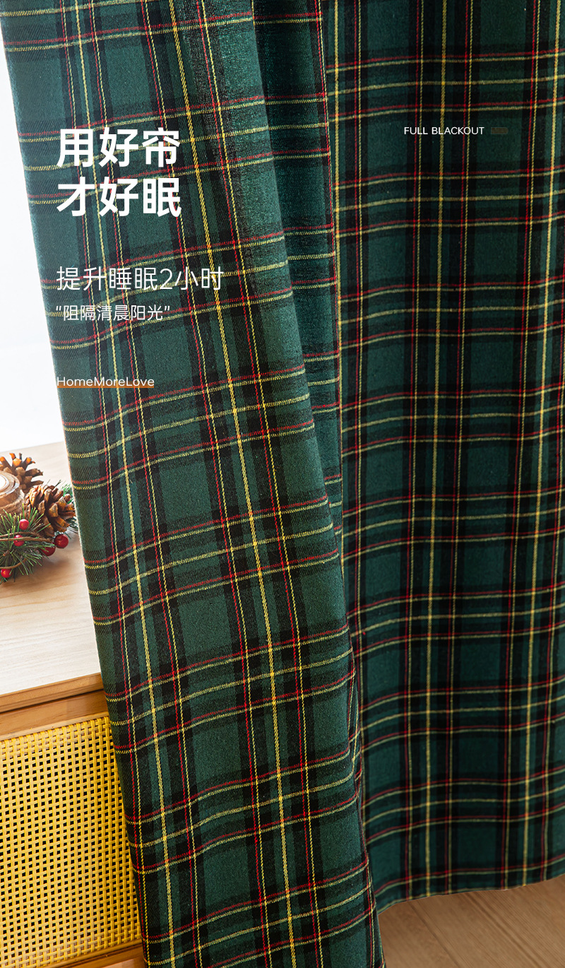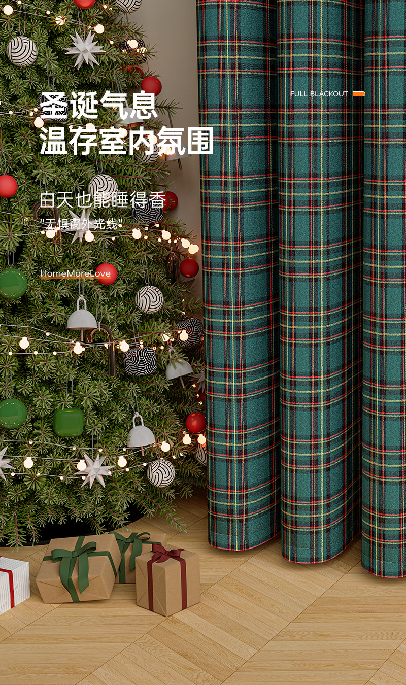 크리스마스 격자 무늬 커튼 미국 휴일 축하 장식 눈송이 모피 공 크리스마스 거실 반 음영 커튼스토어 가기