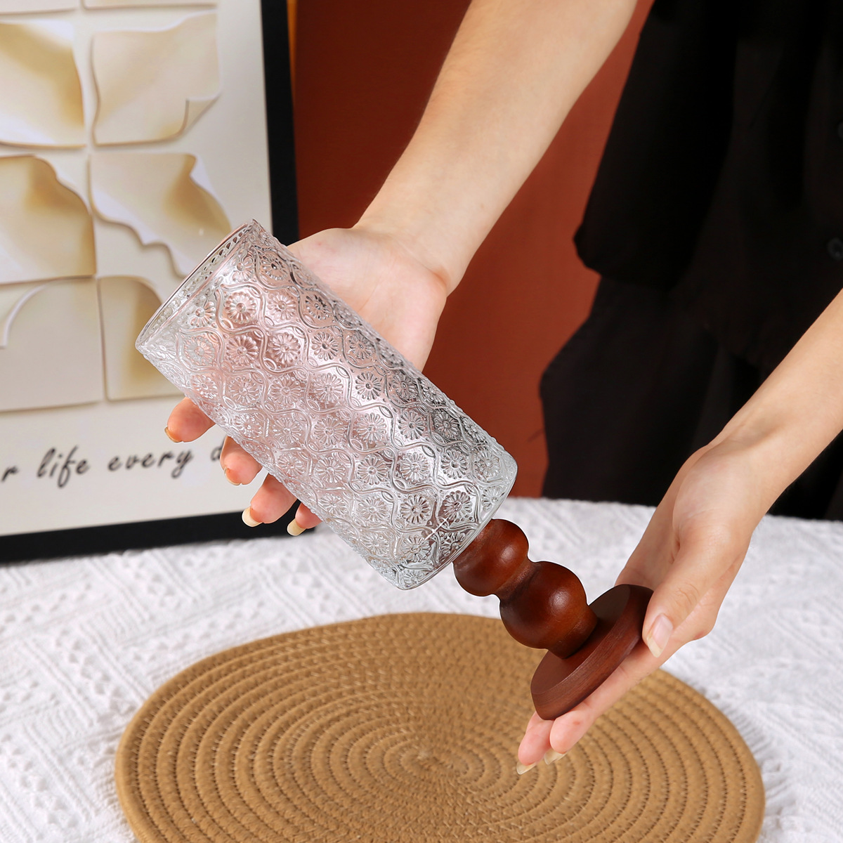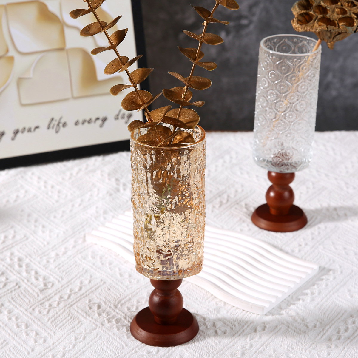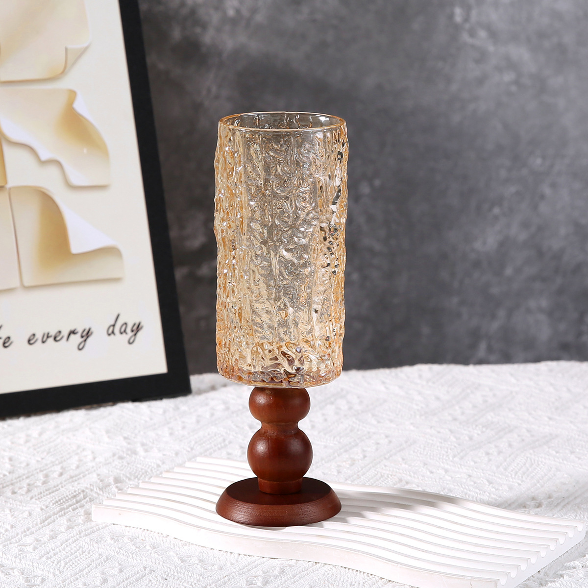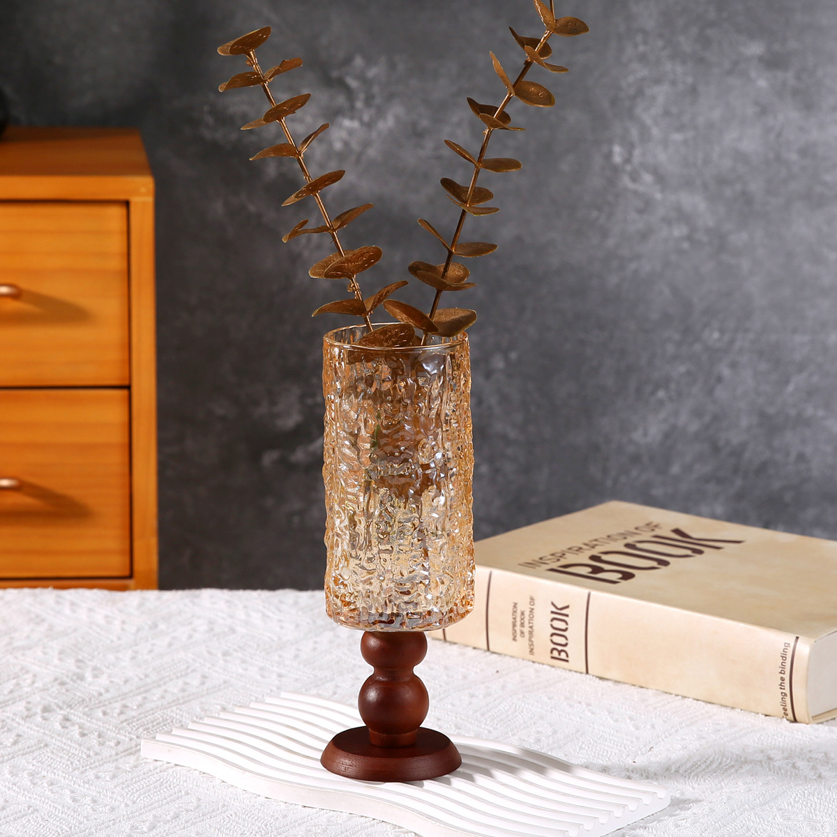중반 고대 스타일 빈티지 나무 키 큰 유리 꽃병 꽃-거실 데스크탑 장식 장식품 홈 하이 엔드 센스 양각스토어 가기