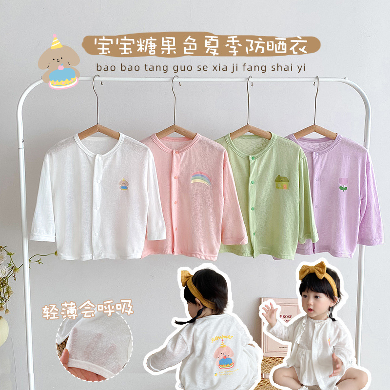 25종 재고 아동용 자외선 차단 의류, 가볍고 통기성 좋은 남녀 아기용 에어컨 셔츠, 자외선 차단 재킷, 카디건, 아이스 실크 여름용스토어 가기