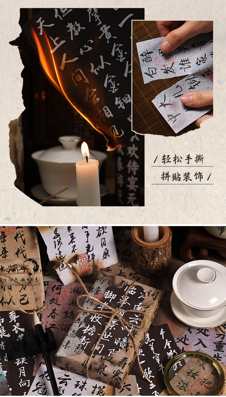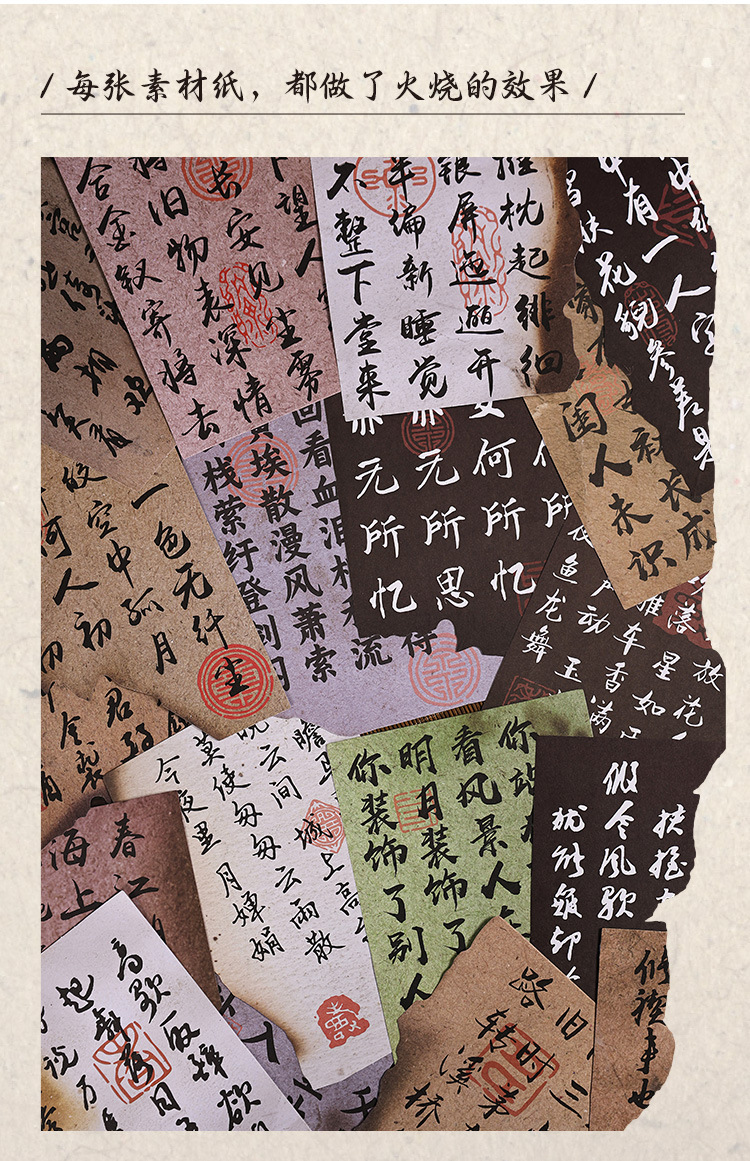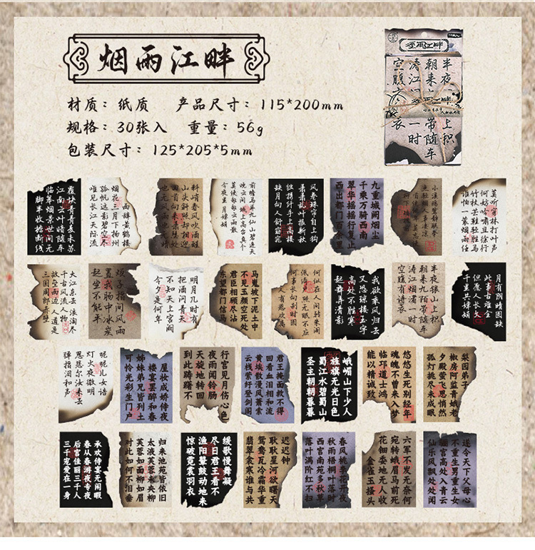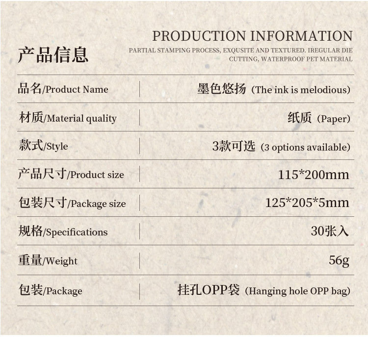 유에시 잉크 멜로디 시리즈 노트 종이 비 스티커 종이 골동품 서예 중국 스타일 손 계정 스티커 30