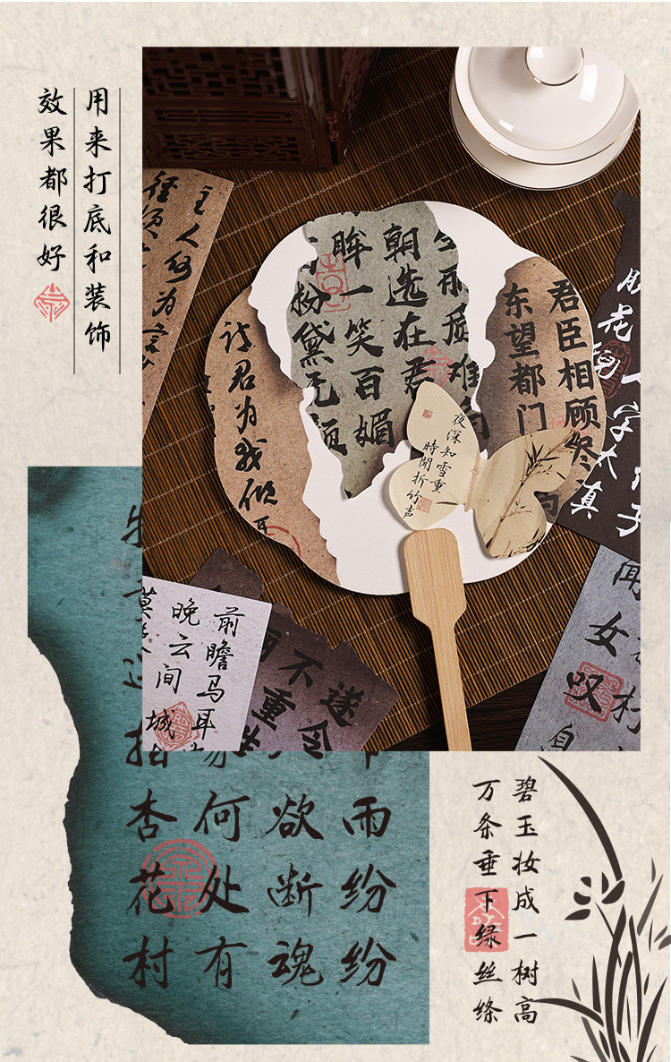 유에시 잉크 멜로디 시리즈 노트 종이 비 스티커 종이 골동품 서예 중국 스타일 손 계정 스티커 30스토어 가기