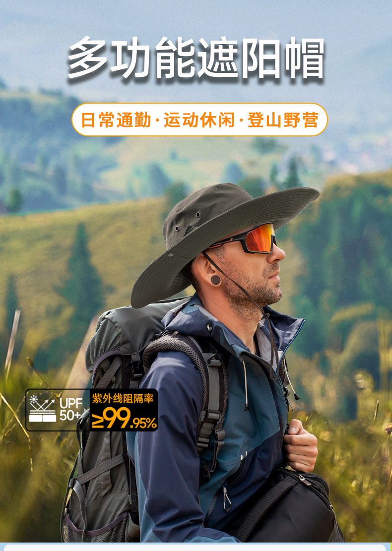 유럽과 미국의 어부 모자 남성과 여성의 큰 챙 모자 여름 UFP50 + 자외선 방지 야외 등산 및 낚시 속건성 자외선 차단 모자