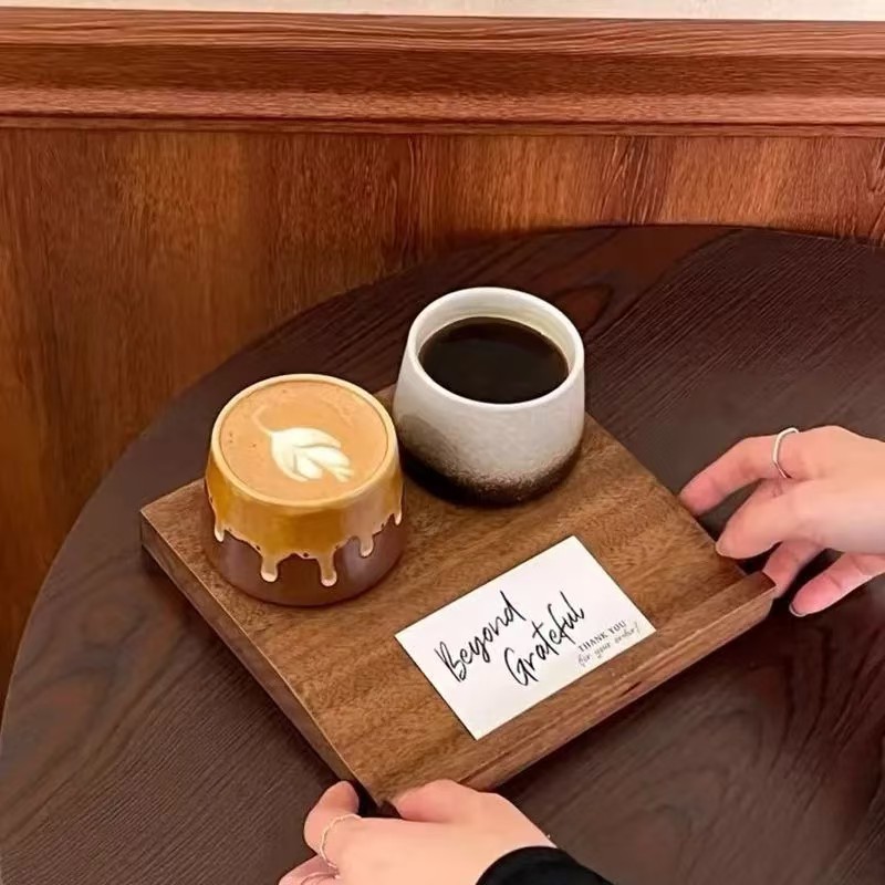 아메리칸 커피 컵 트레이 위스키 레드 바 컵 솔리드 우드 코스터 시음 컵 홀더 맥주 나무 트레이