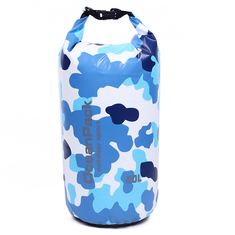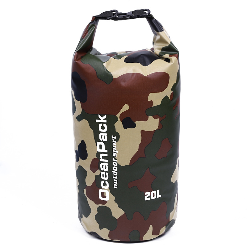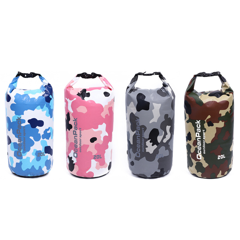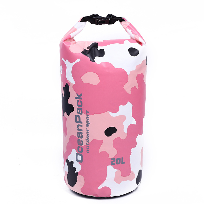 아마존 국경 뜨거운 판매 20L 방수 가방 해변 수영 위장 PVC 클립 메쉬 드리프트 방수 가방에 적합