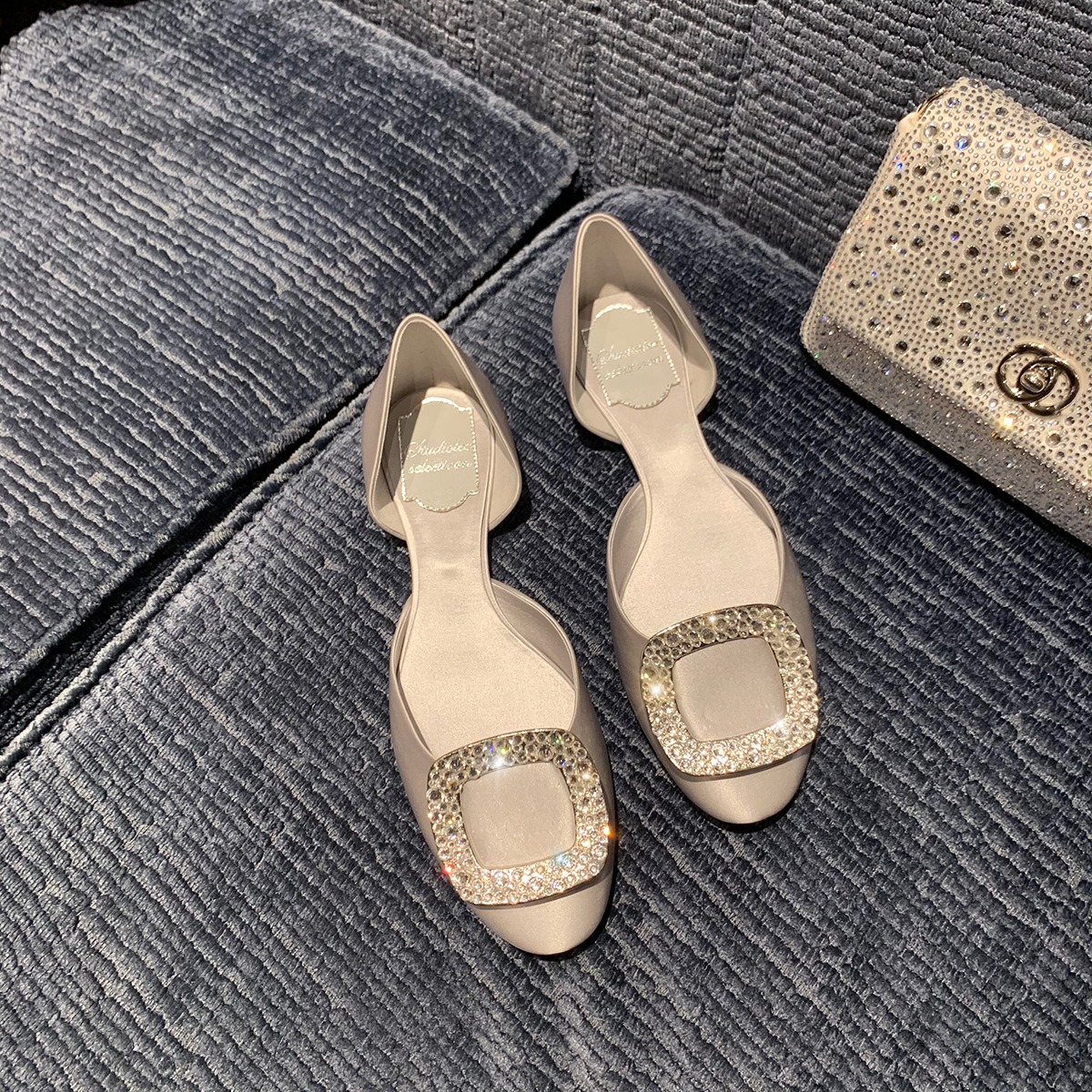 양가죽 판 ~ 포도 엄마 같은 스타일 봄과 여름 새로운 요정 스퀘어 다이아몬드 얕은 입 할로우 샌들 여성용 플랫 슈즈