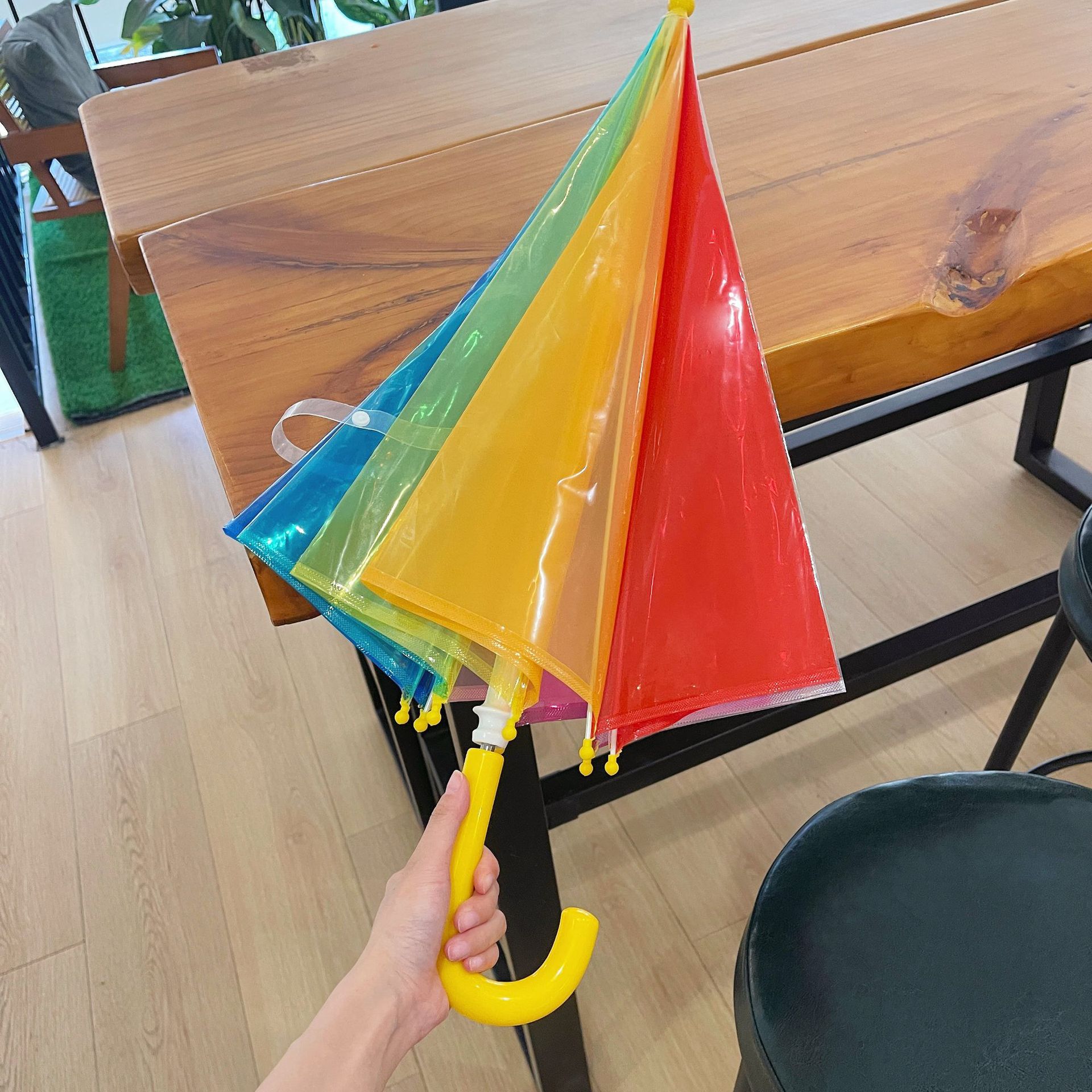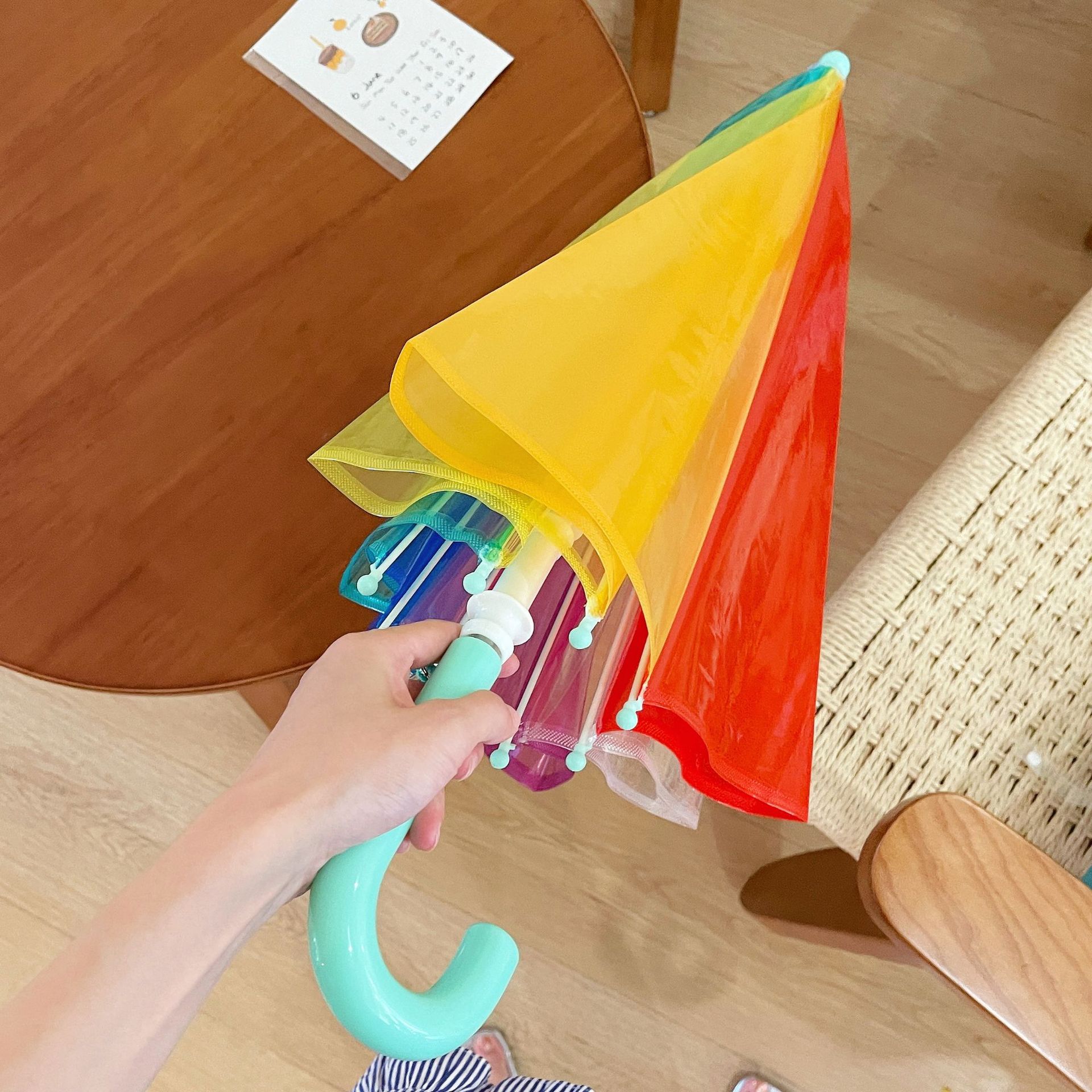 무지개 우산 어린이 투명 우산 소녀 공주 아치 유치원 아기 소년 긴 손잡이 우산 귀여운 만화스토어 가기