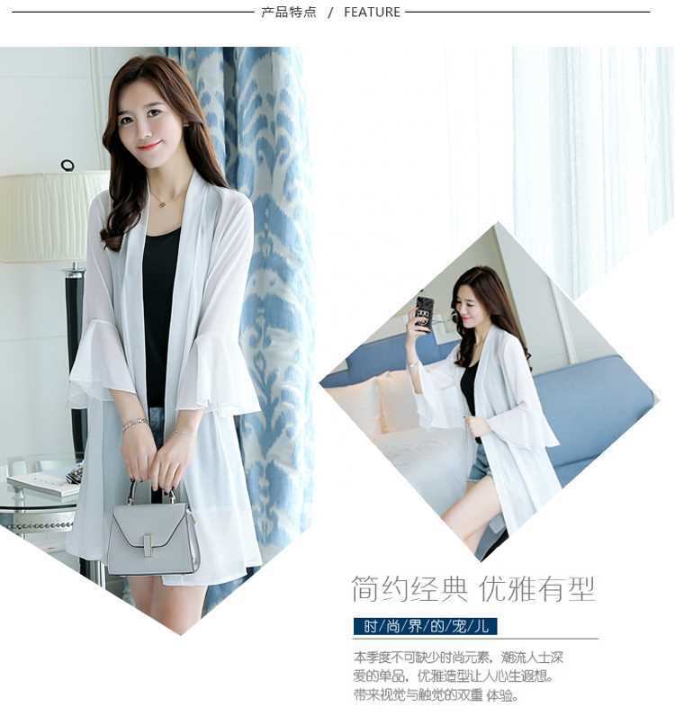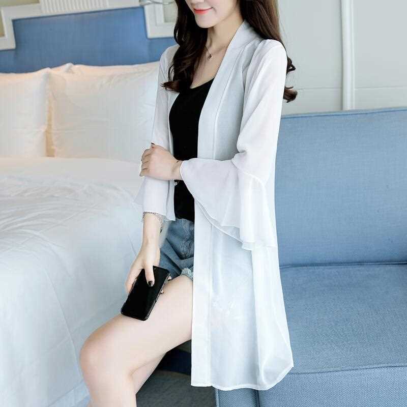 2023 년 여름 새로운 중간 길이의 시폰 카디건 얇은 코트 목도리 최고 슈퍼 요정 외부 솔리드 컬러 태양 보호 의류