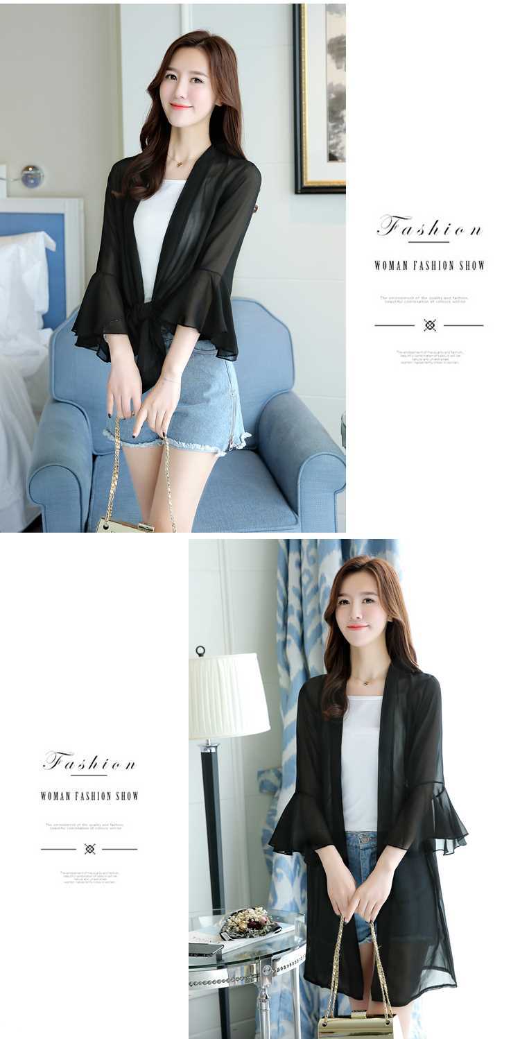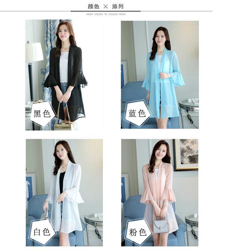 2023 년 여름 새로운 중간 길이의 시폰 카디건 얇은 코트 목도리 최고 슈퍼 요정 외부 솔리드 컬러 태양 보호 의류스토어 가기
