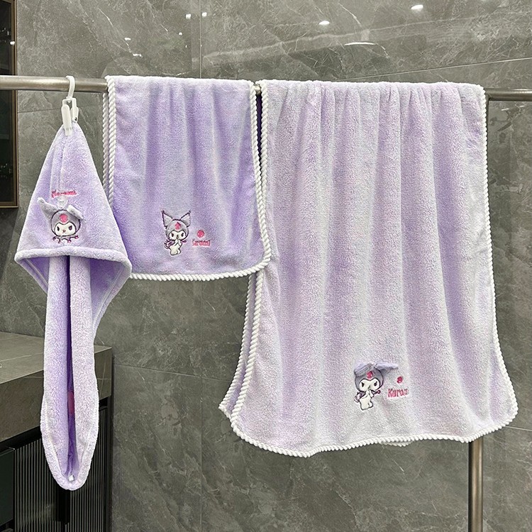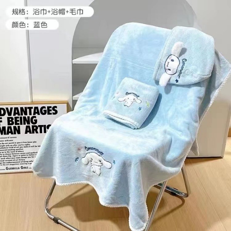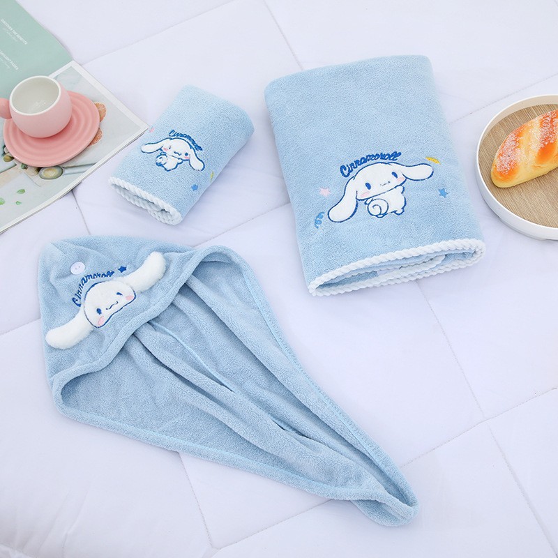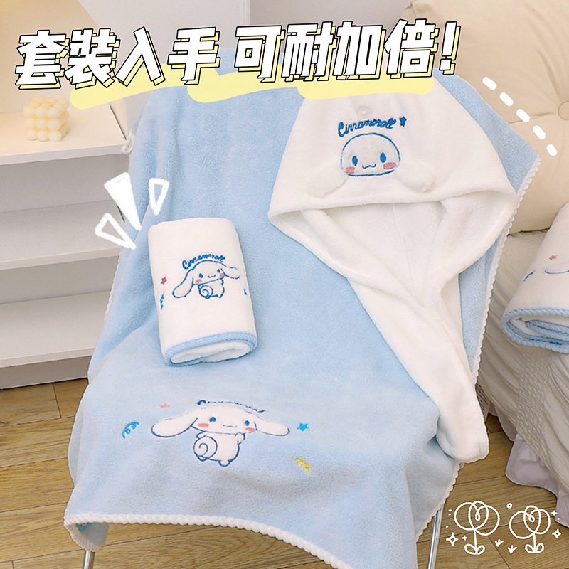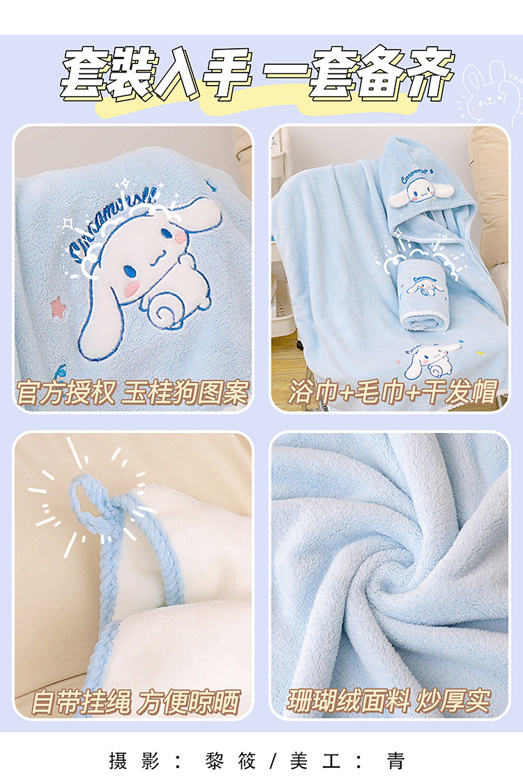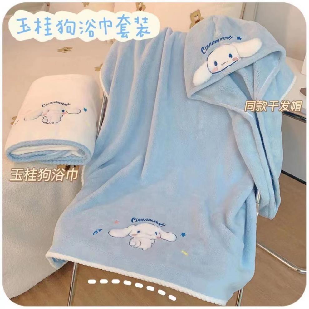 만화 Kulomi Yugui 개 타월 목욕 타월 드라이 헤어 캡 세트 산호 양털 학생 기숙사 목욕 타월 3 피스 세트