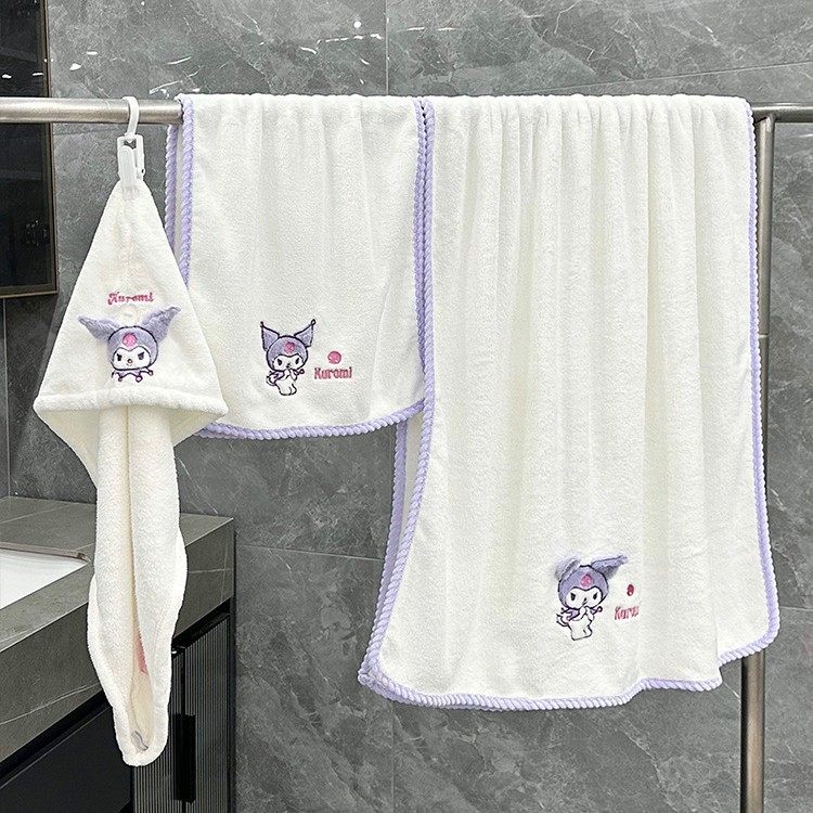 만화 Kulomi Yugui 개 타월 목욕 타월 드라이 헤어 캡 세트 산호 양털 학생 기숙사 목욕 타월 3 피스 세트스토어 가기
