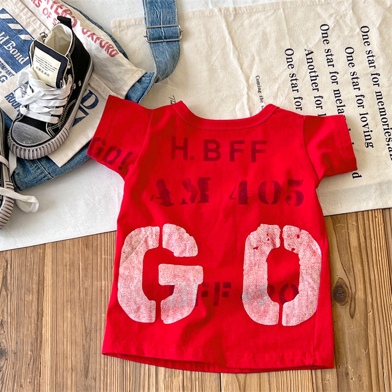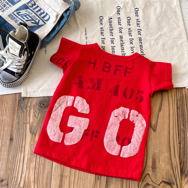[재고] 일본 어린이 착용 중 DD 어린이 여름 배지 티셔츠 오래 된 환경 친화적 인 인쇄 짧은 소매스토어 가기