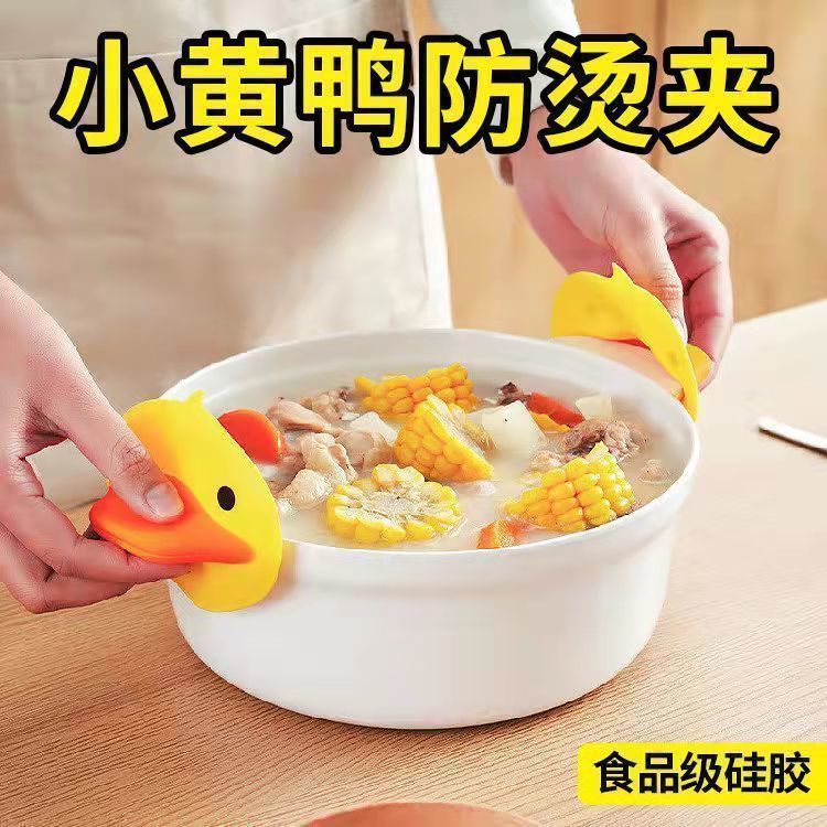 주방용 방열 실리콘 작은 노란 오리 주둥이, 두꺼운 단열재, 냄비 끝 부분을 고온에 견디는 전자레인지용 그릇 손잡이스토어 가기