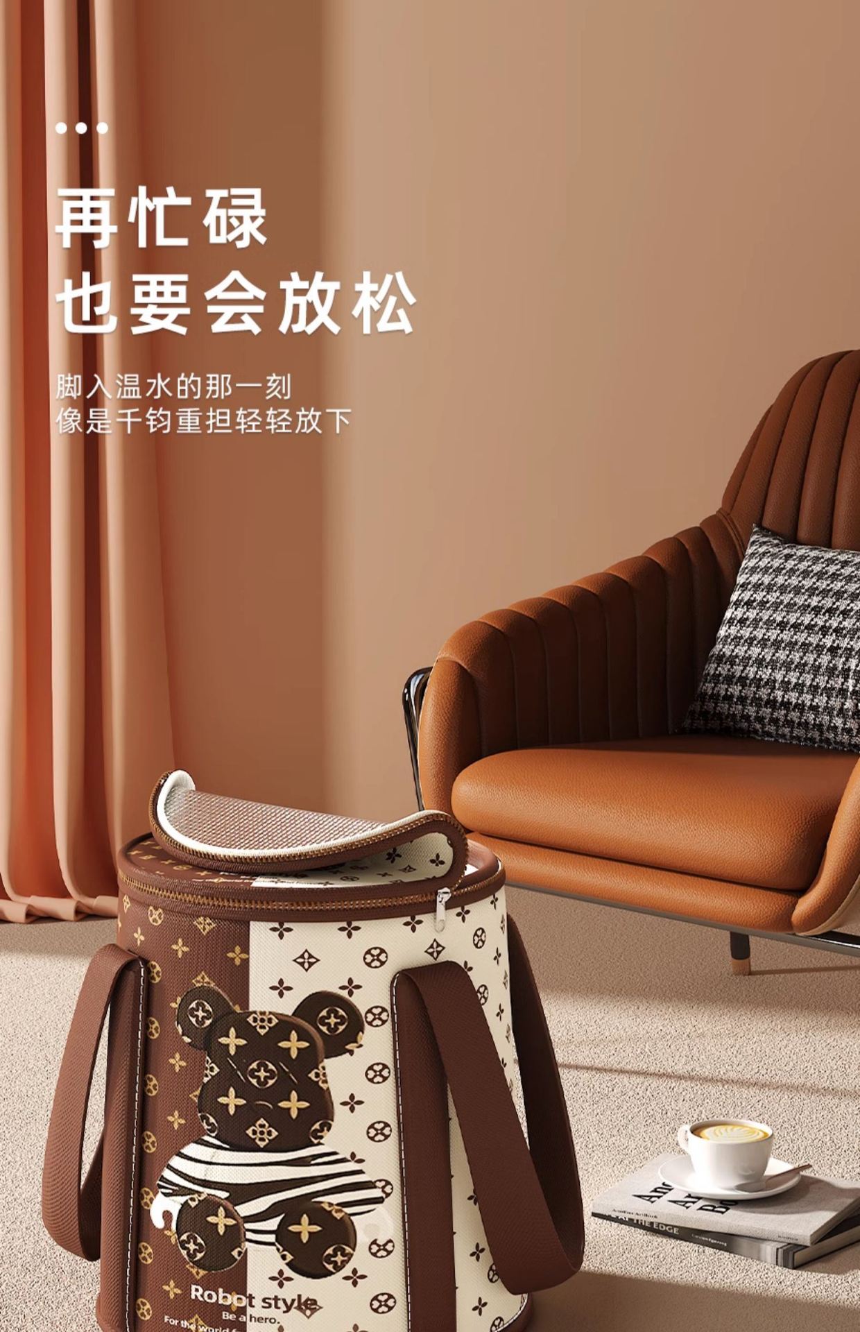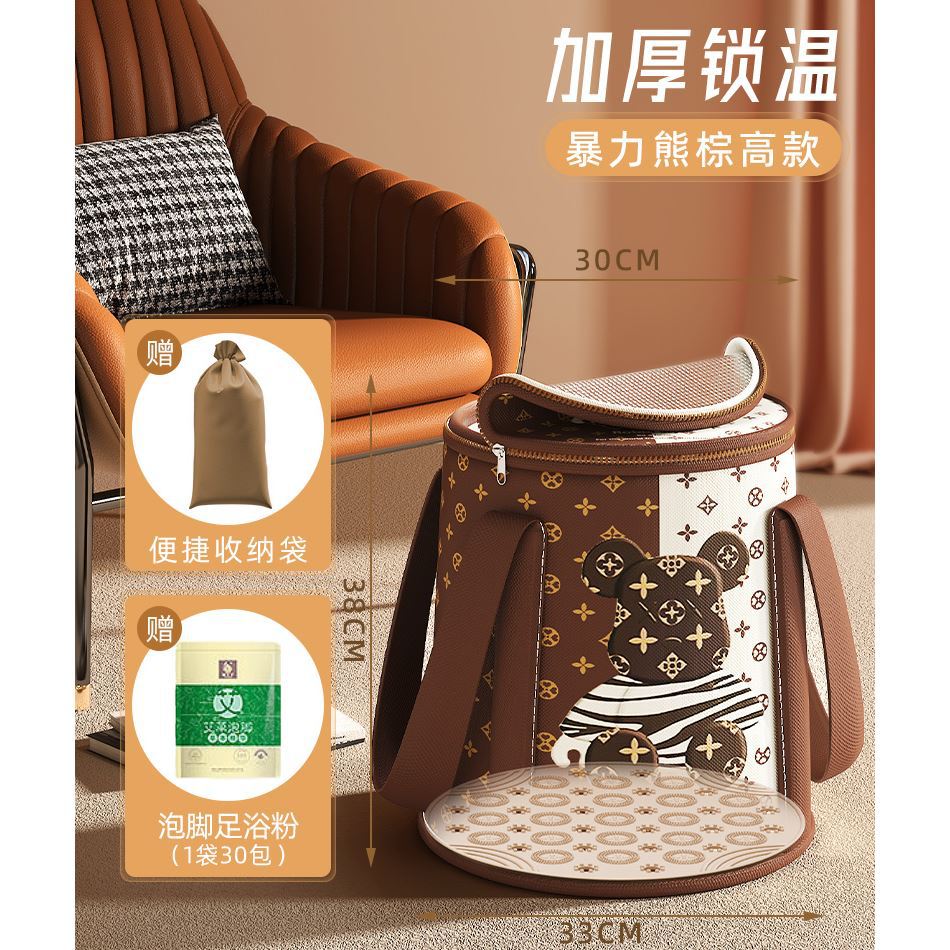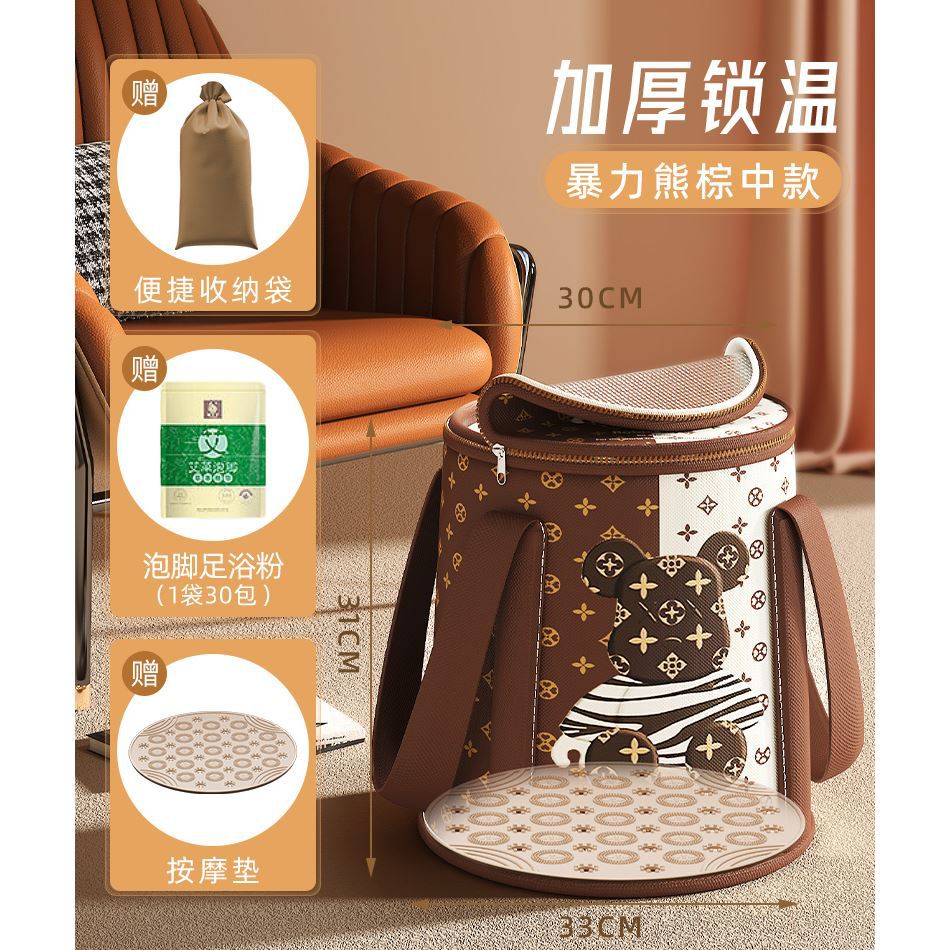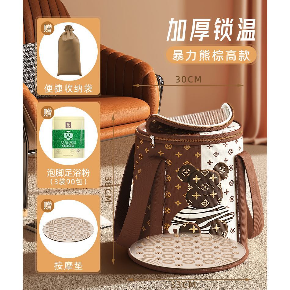 • ➹➹높이 31cm [사다리꼴 기울어짐 방지] 브라운 뚜껑 포함 + 족욕 파우더 대용량 가방 * 1 + 마사지 쿠션 + 수납 가방➹➹
