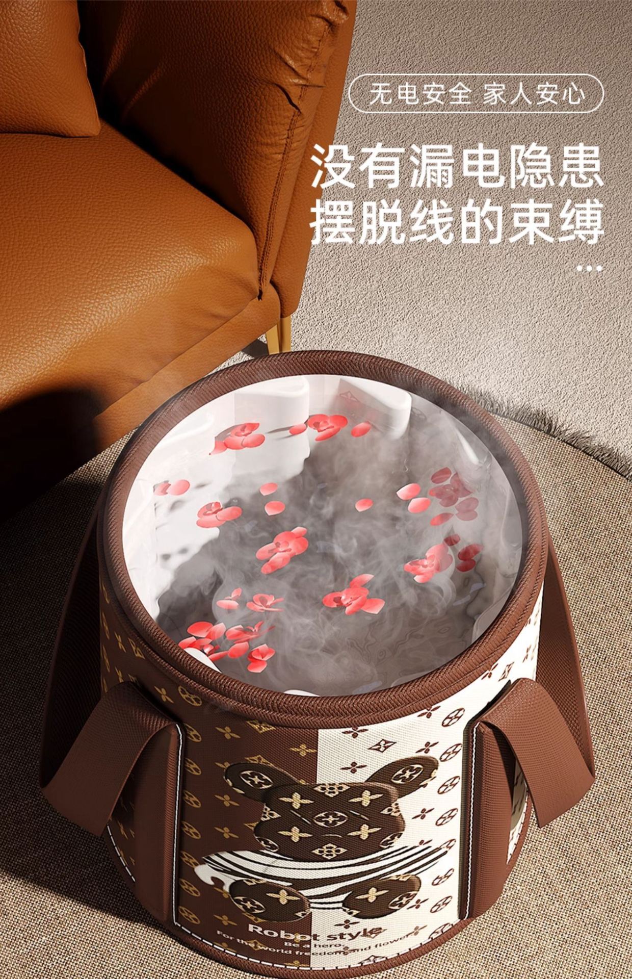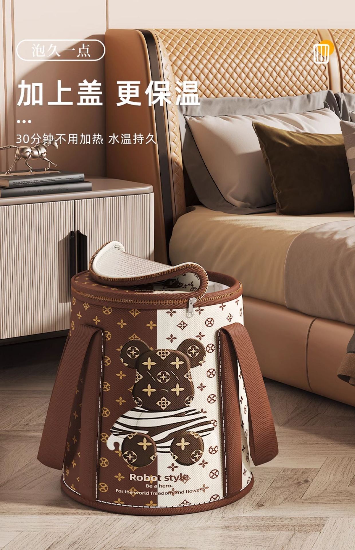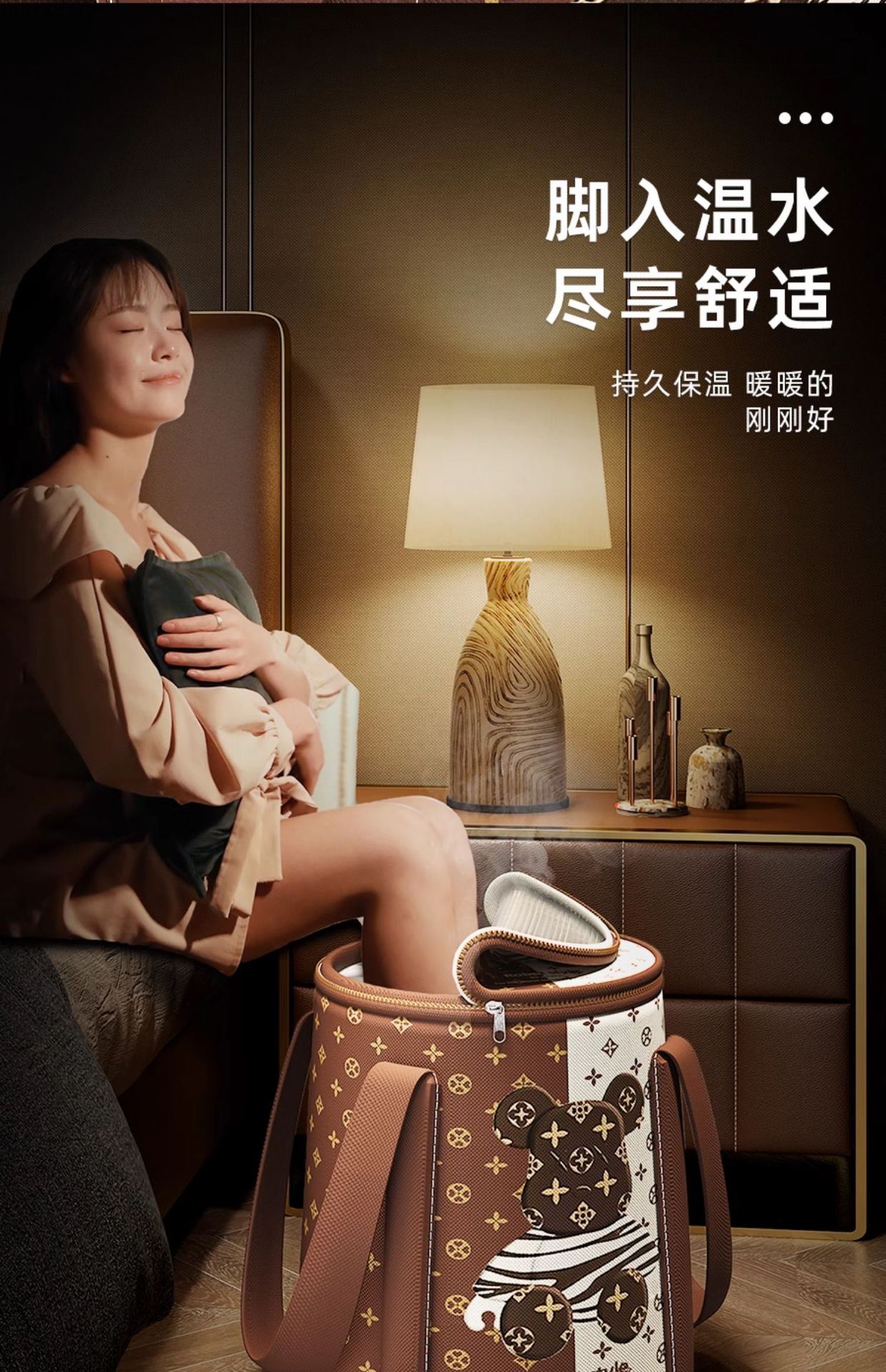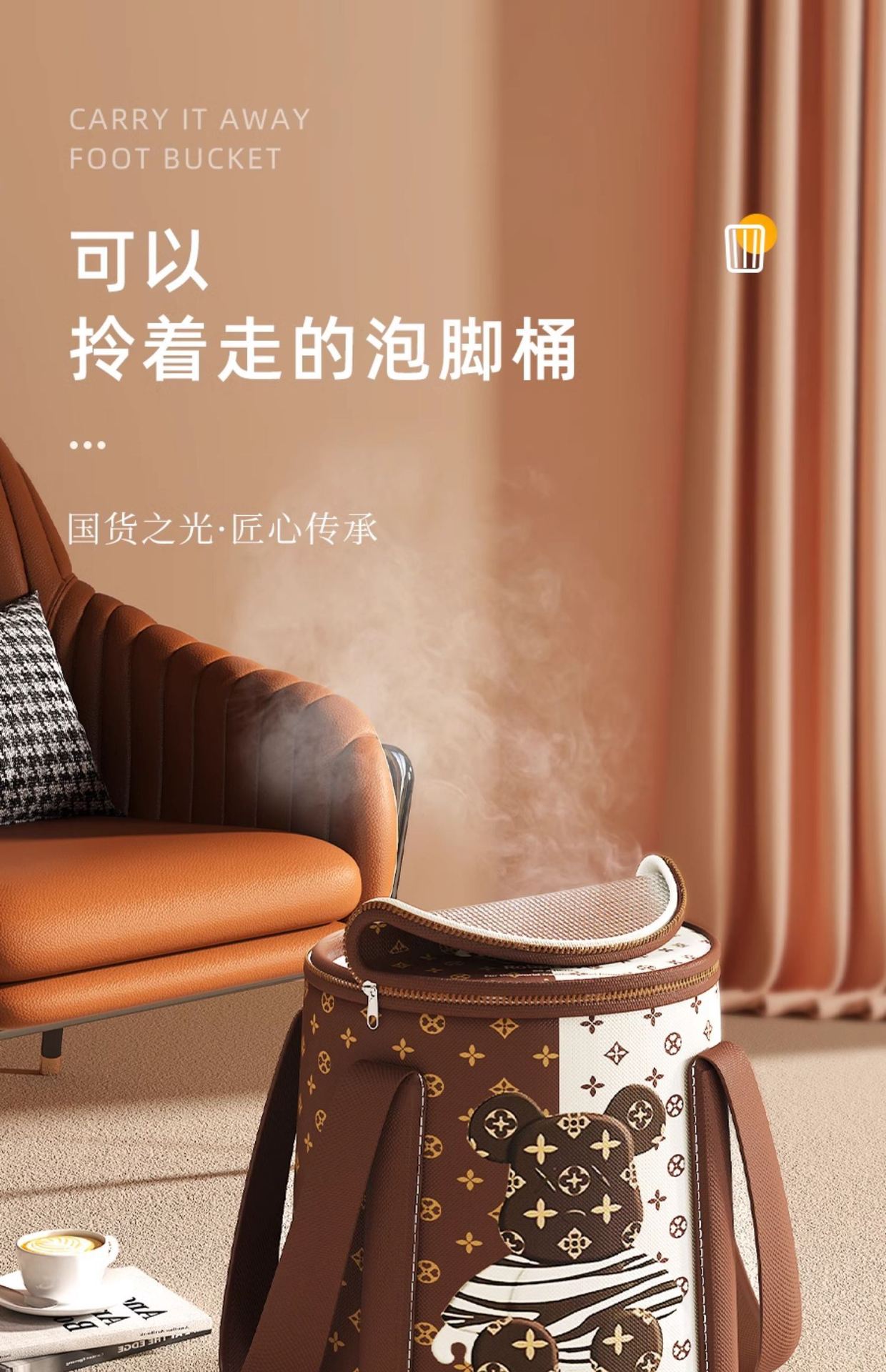 • ➹➹높이 31cm [사다리꼴 기울어짐 방지] 브라운 뚜껑 포함 + 족욕 파우더 대용량 가방 * 1 + 마사지 쿠션 + 수납 가방➹➹