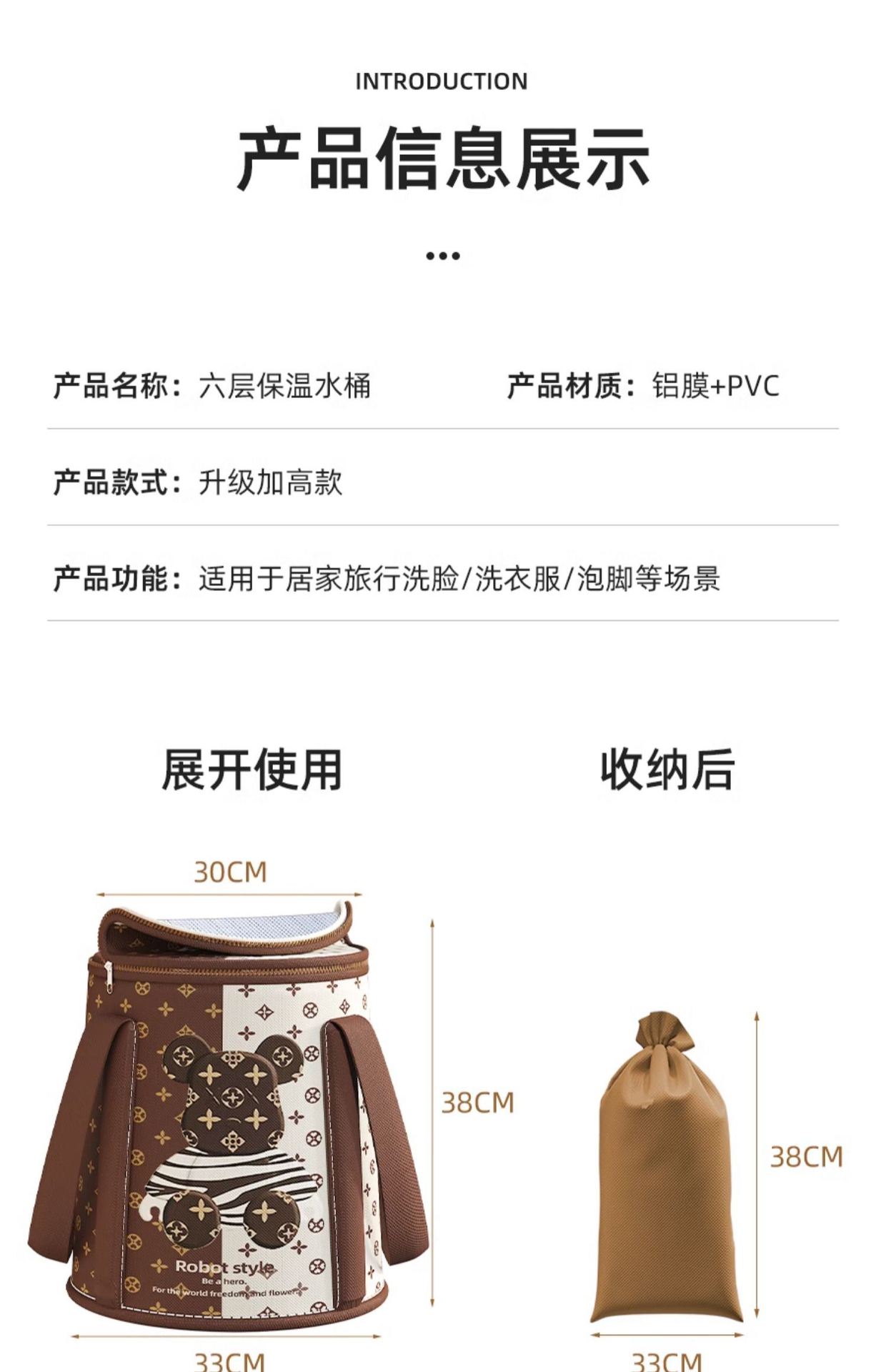 • ➹➹높이 38cm [종아리까지 담글 수 있음] 브라운 커버 포함 [5겹 온도 잠금, 누수 보장]➹➹