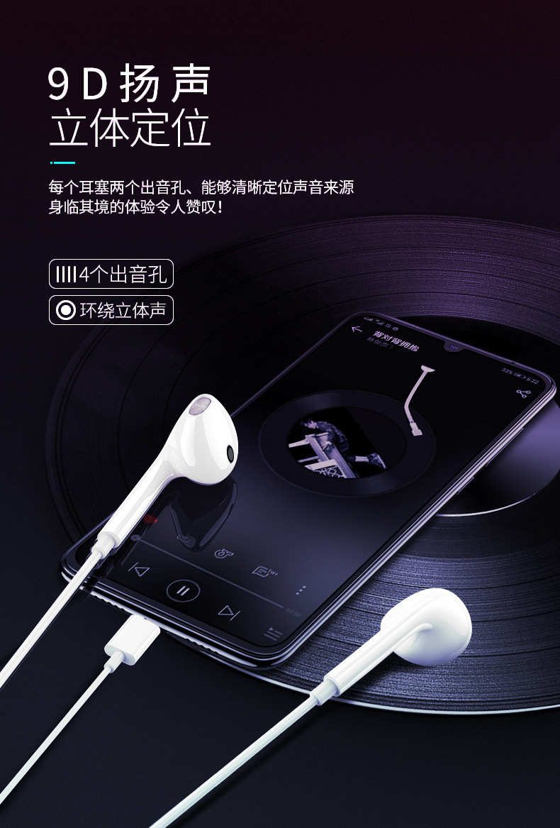 Type-c 이어폰 형 Bluetooth Apple 15 헤드폰 유선 Android 둥근 구멍 와이어 제어 iphone 플랫 헤드 헤드폰에 적합스토어 가기