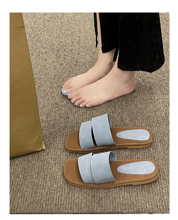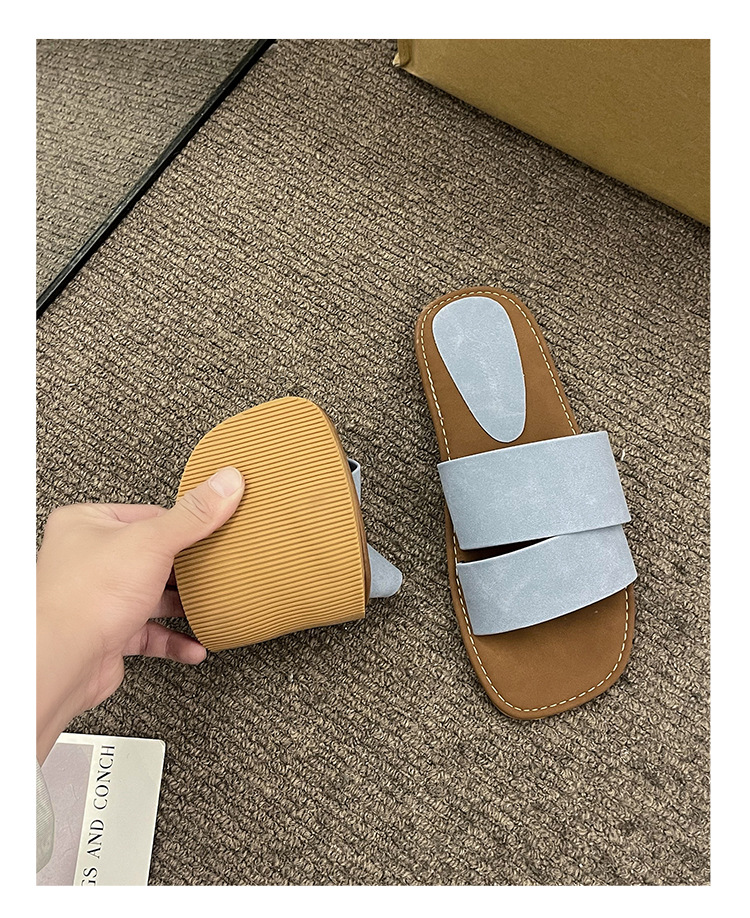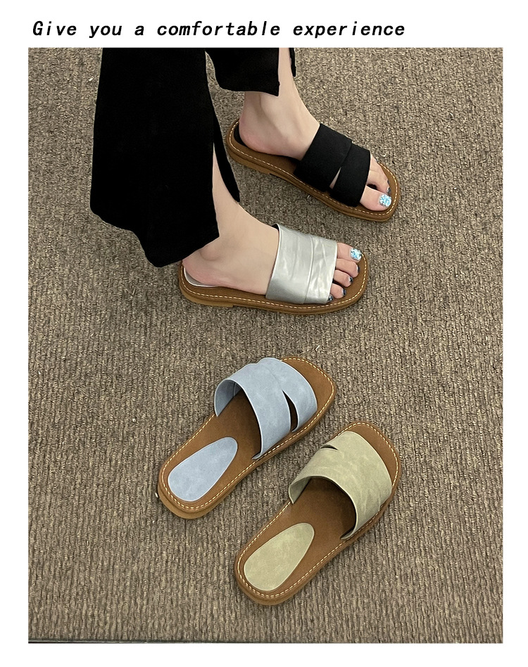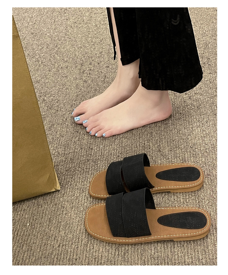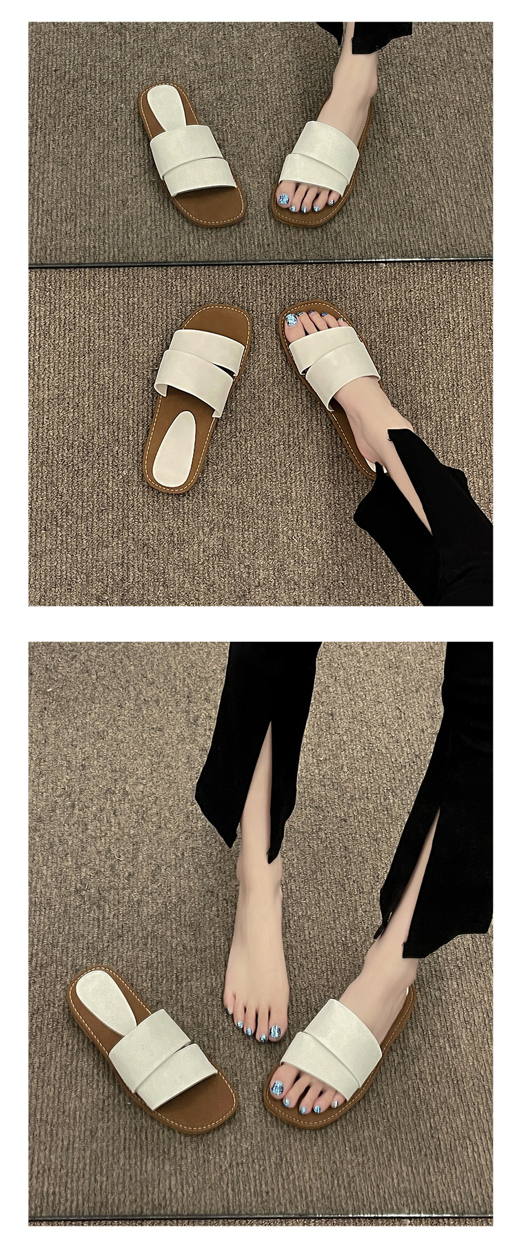 팬 지야 패션 프랑스 스타일 슬리퍼 여성의 2024 여름 새로운 스타일 외부 착용 플랫 샌들 해변 해변 슬리퍼