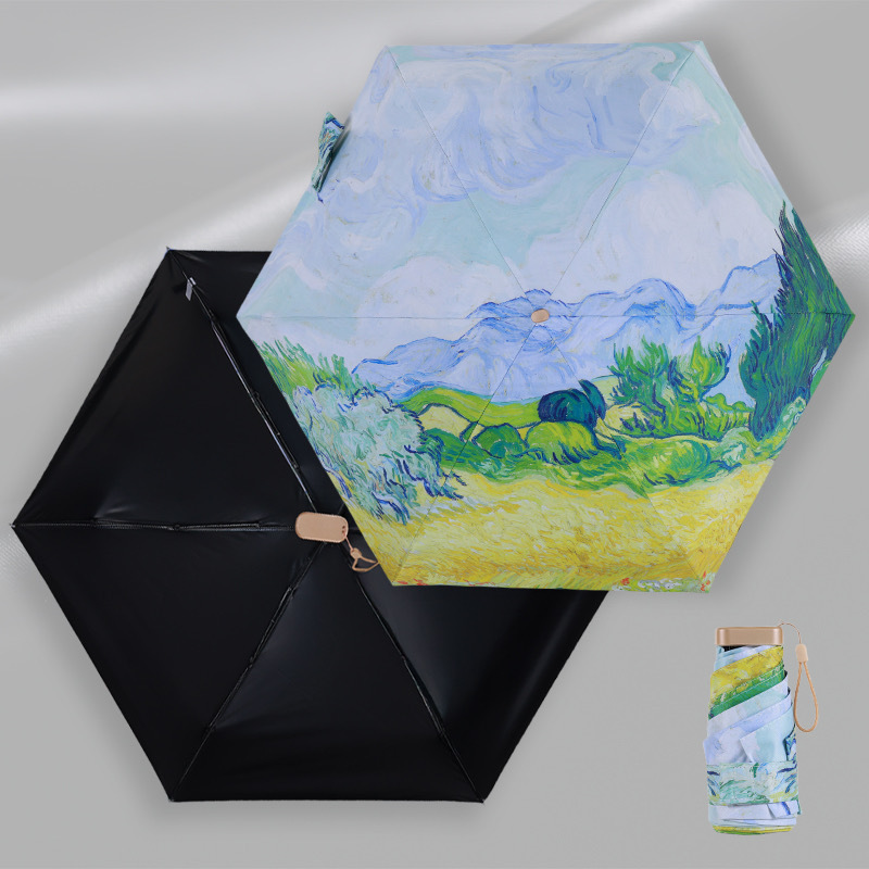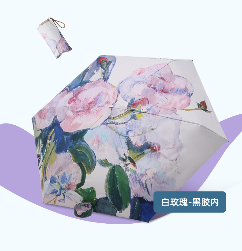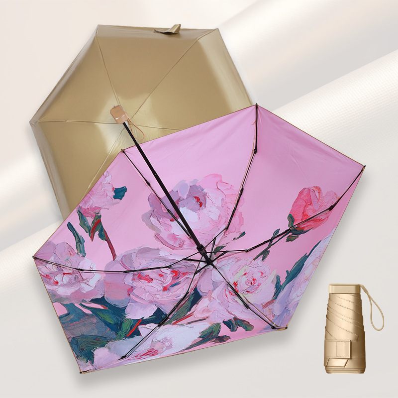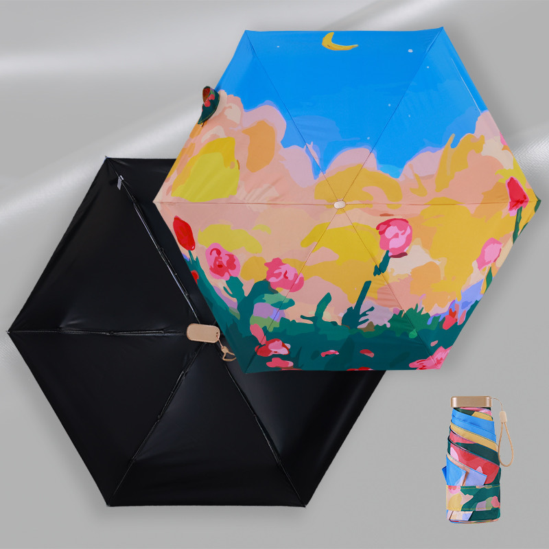 유화 초경량 평면 6 배 우산 태양 보호 자외선 보호 태양 우산 맑고 비 이중 목적 접이식 작고 편리한 햇빛 우산