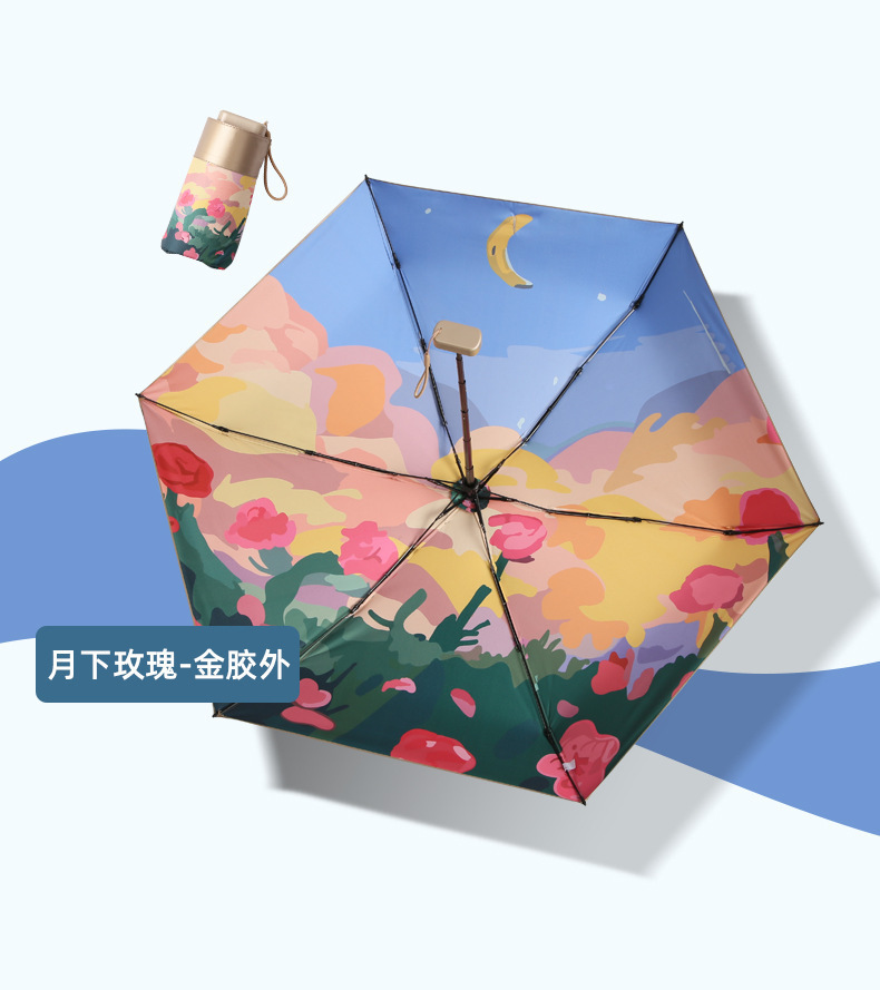 • [티타늄 60% 플랫 우산] 달 아래 장미 (초경량 및 휴대용)