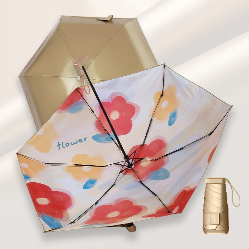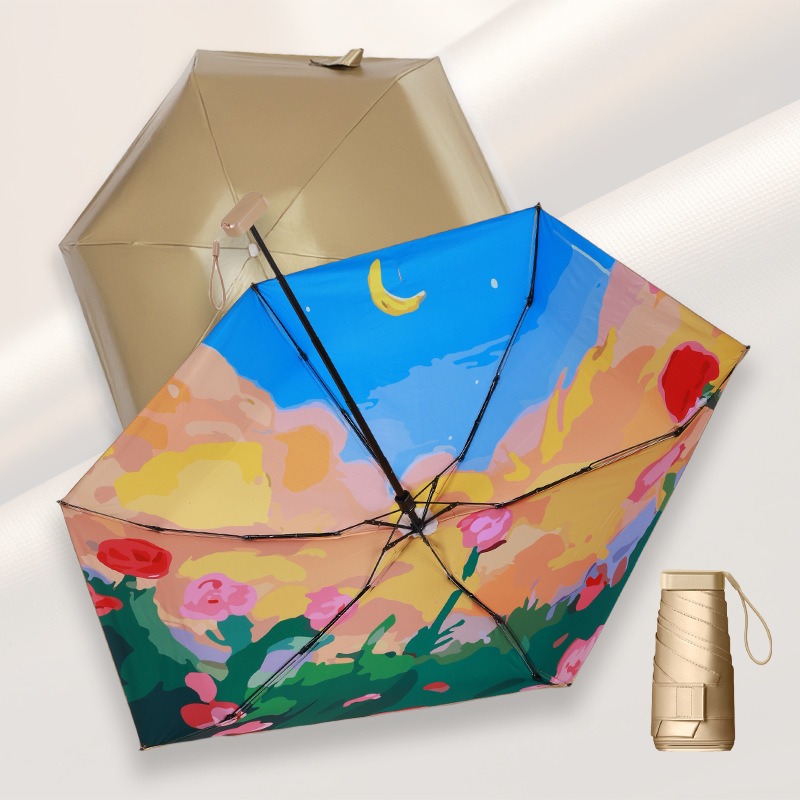 유화 초경량 평면 6 배 우산 태양 보호 자외선 보호 태양 우산 맑고 비 이중 목적 접이식 작고 편리한 햇빛 우산스토어 가기