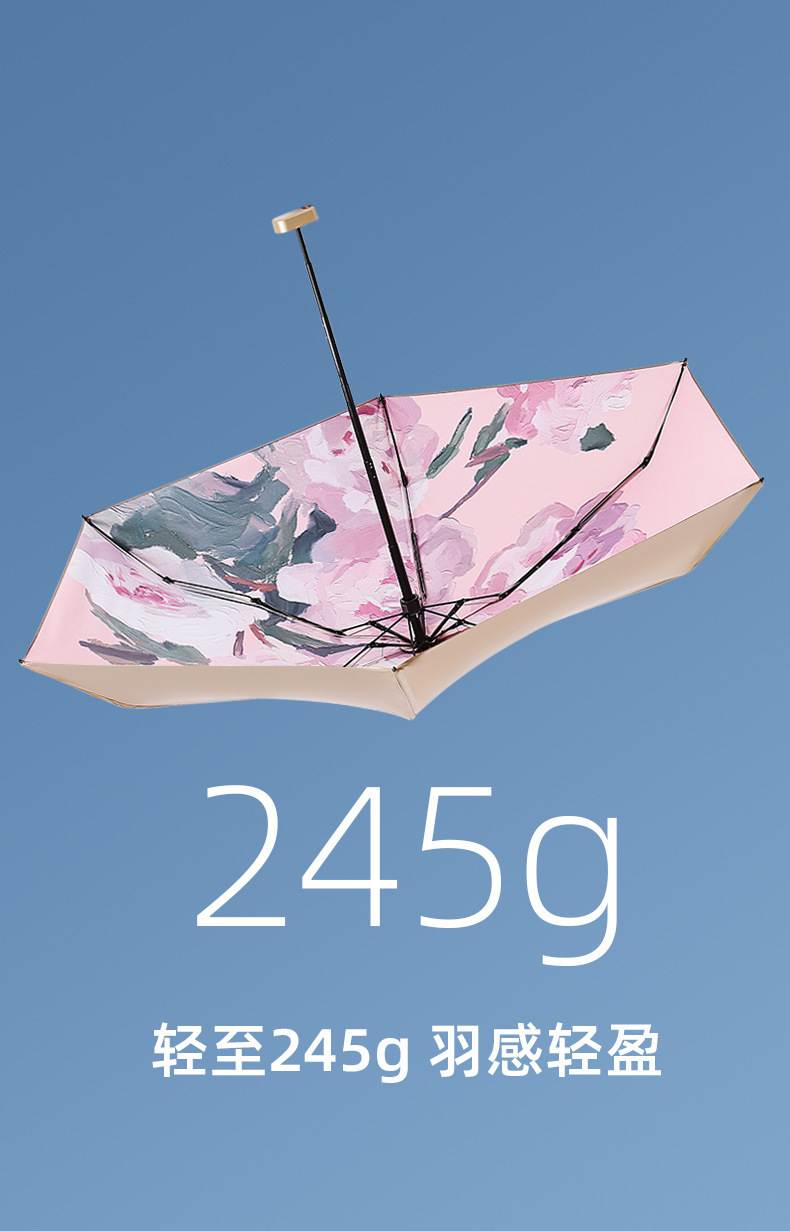 • [티타늄 6 배 편평한 우산] 분말 모란 (울트라 라이트 휴대용)