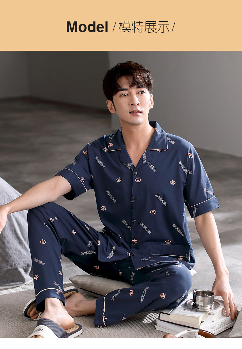 남자 잠옷 여름 타이트면 반팔 얇은 10 대 플러스 사이즈 복장 남성 홈 의류 세트스토어 가기