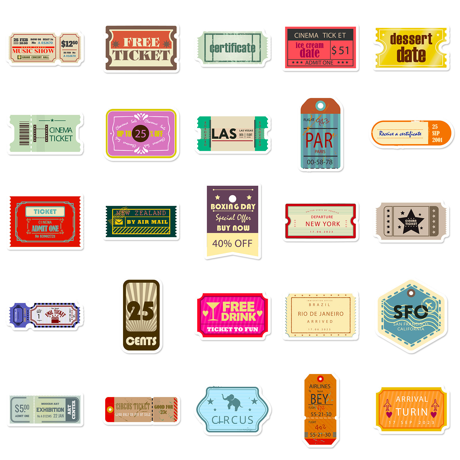 빈티지 티켓 컬렉션 스티커 50 개 할인 볼륨 운송량 영어 스티커 장식 수하물 컵 스티커스토어 가기