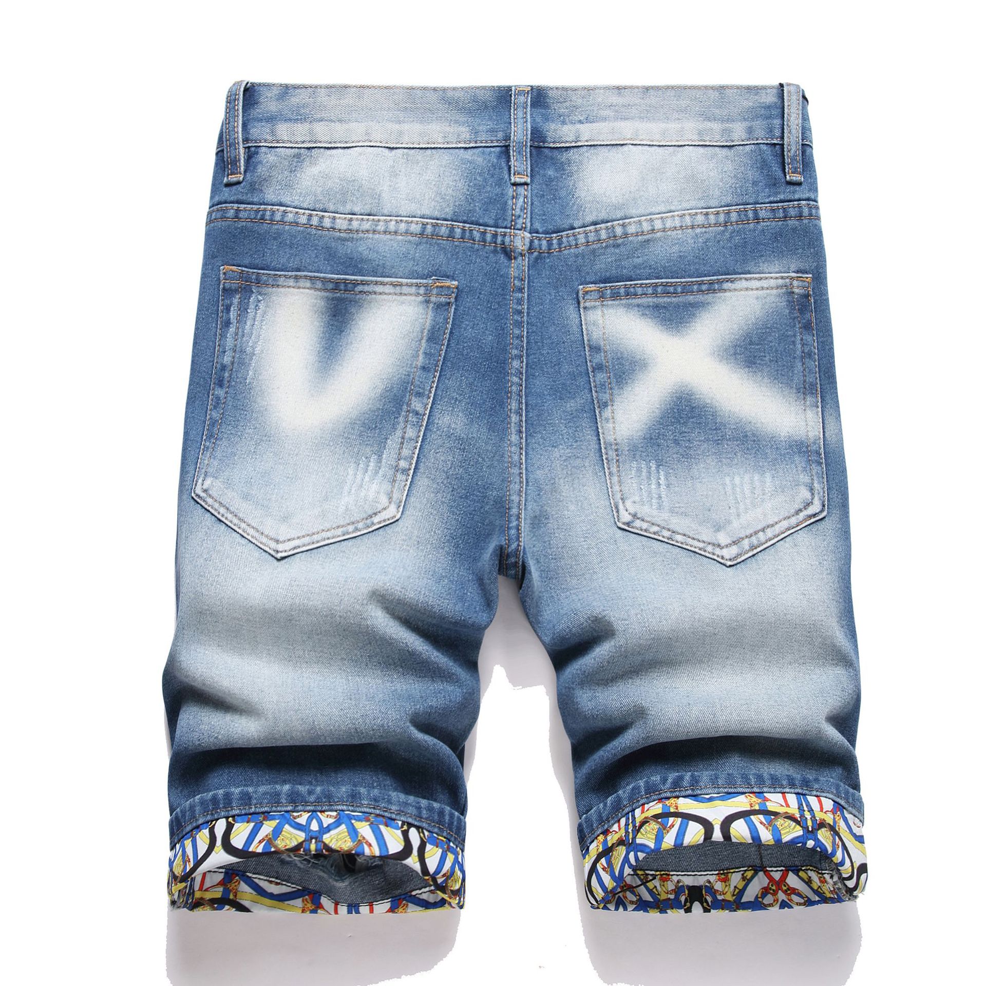 재고 새로운 도착 여름 그라인드 홀 페인트 젊은 남자 5 점 데님 반바지 남성용 트렌디 슬림 핏 스트레이트 다리 바지스토어 가기