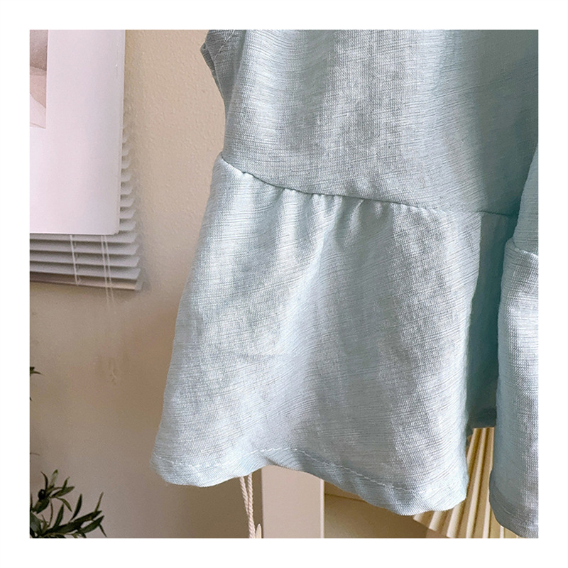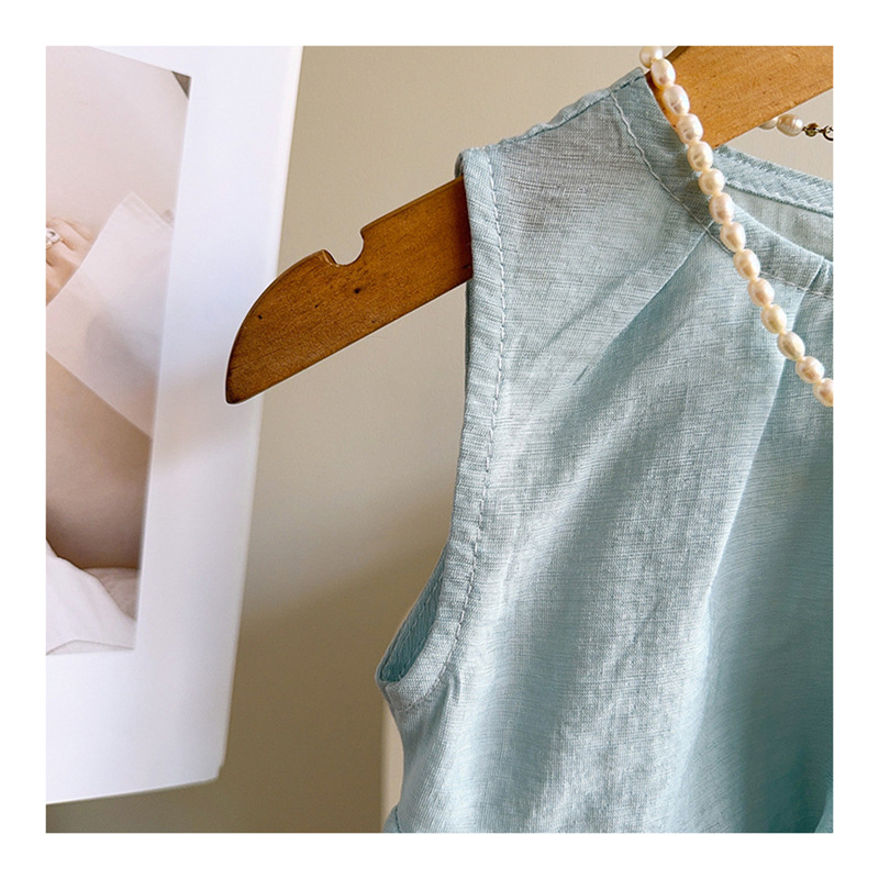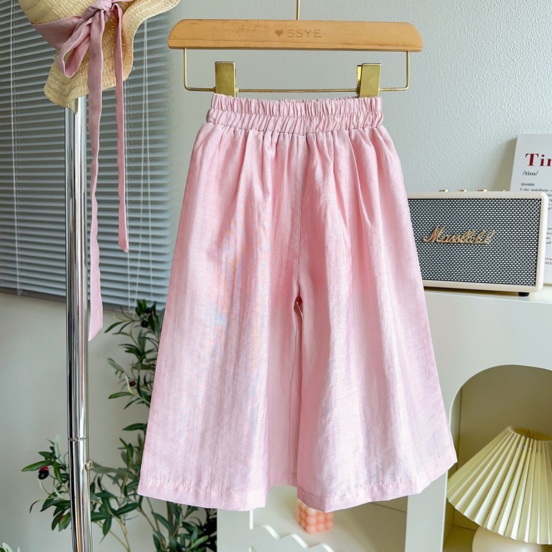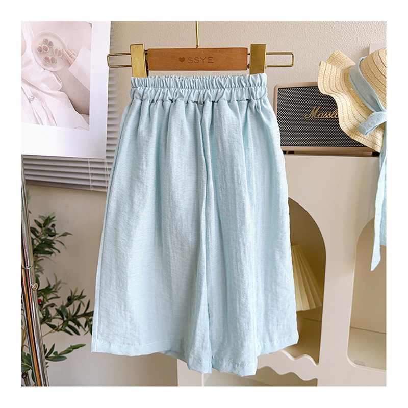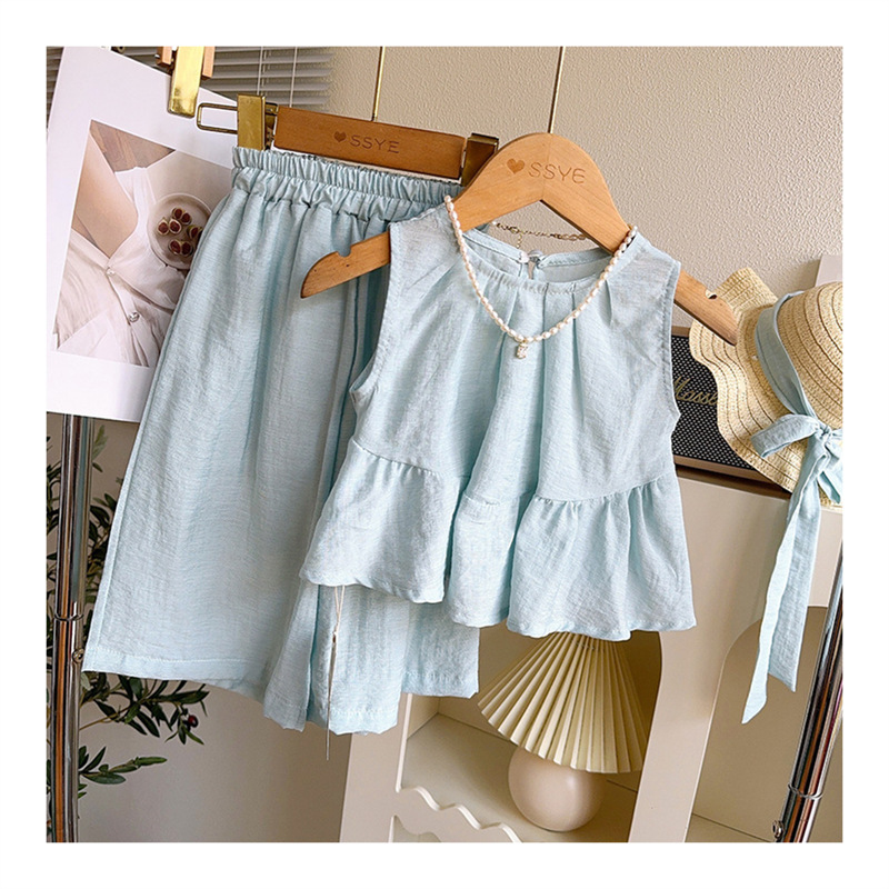 한국 어린이 세트 2024 여름 새 여자 인형 셔츠 조끼 넓은 다리 바지 투피스 캐주얼 여름 원피스