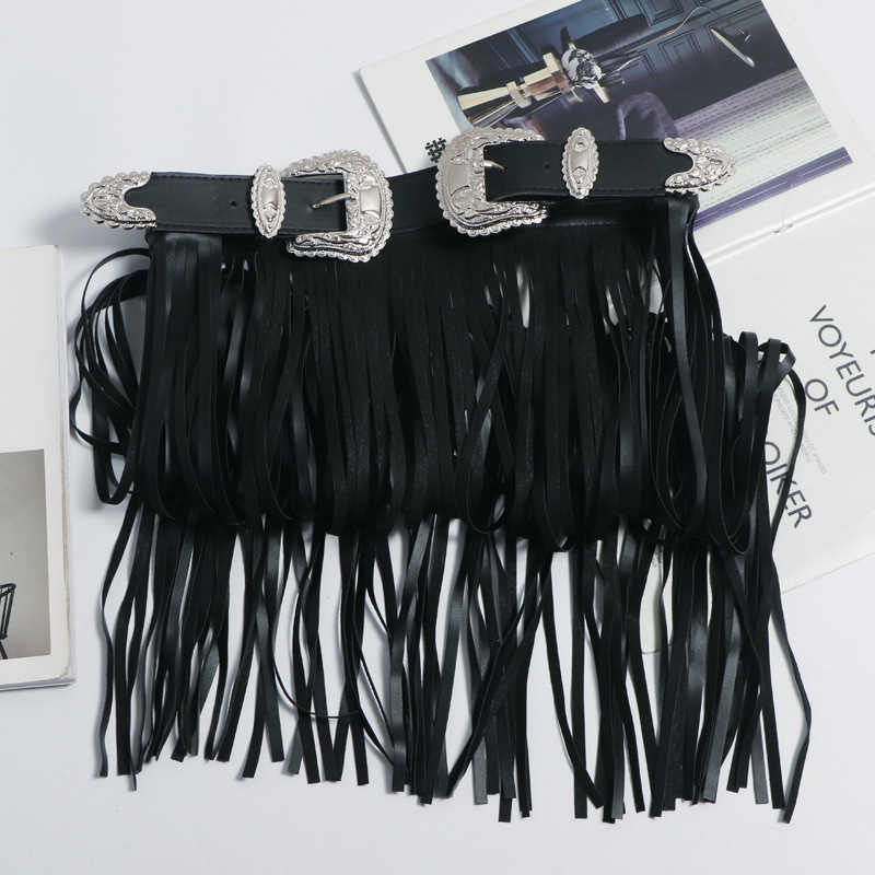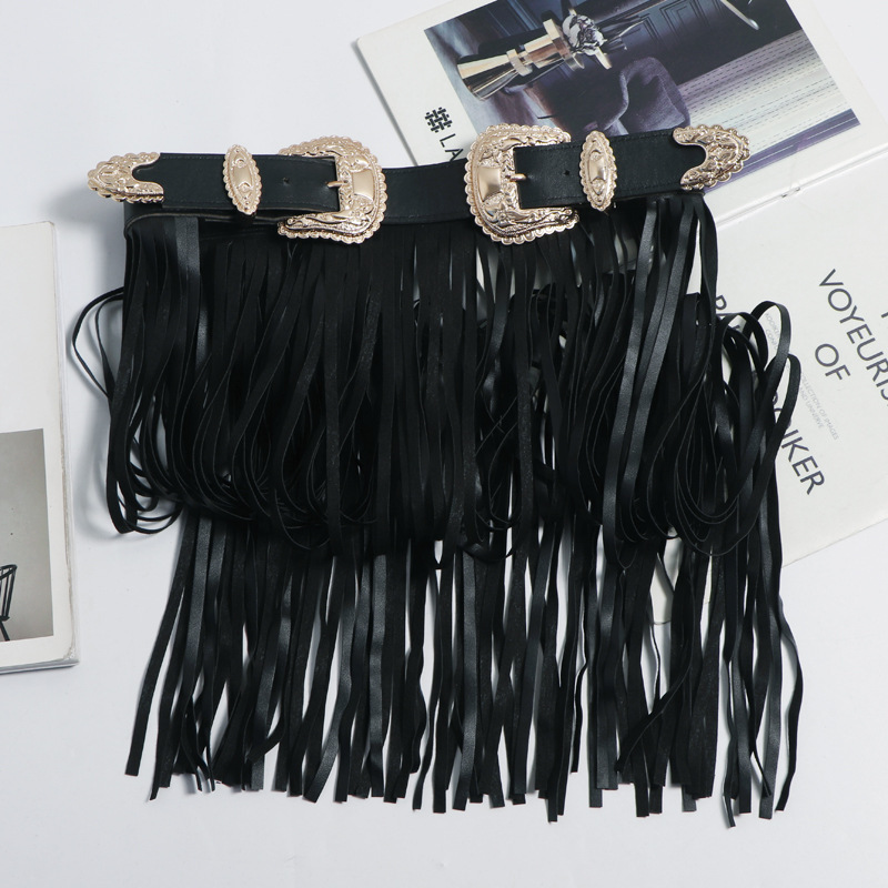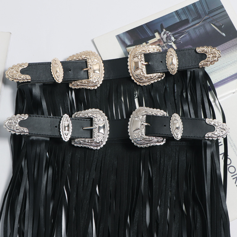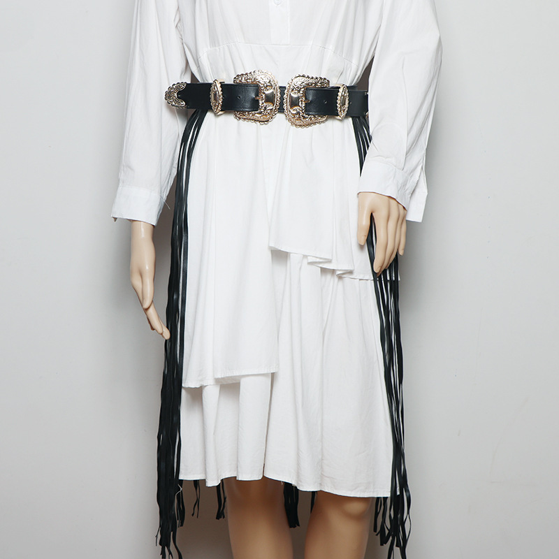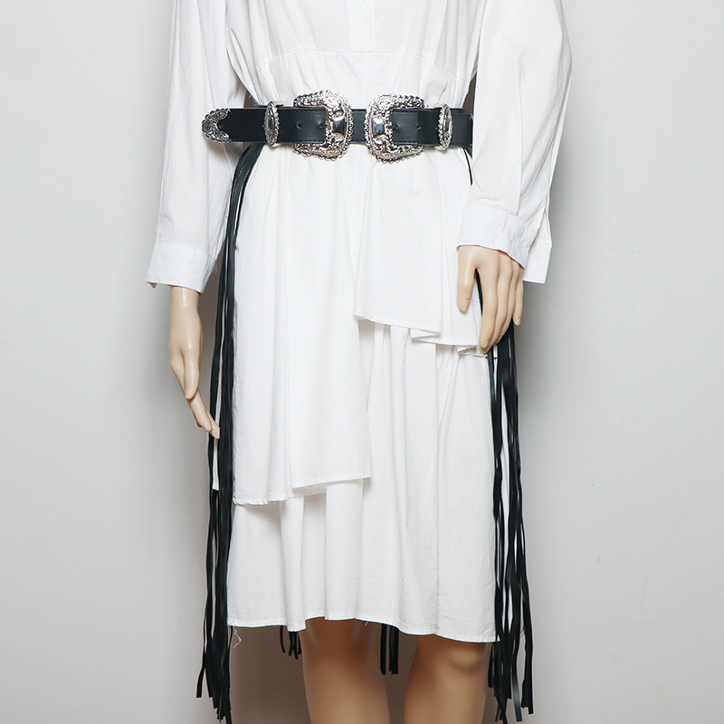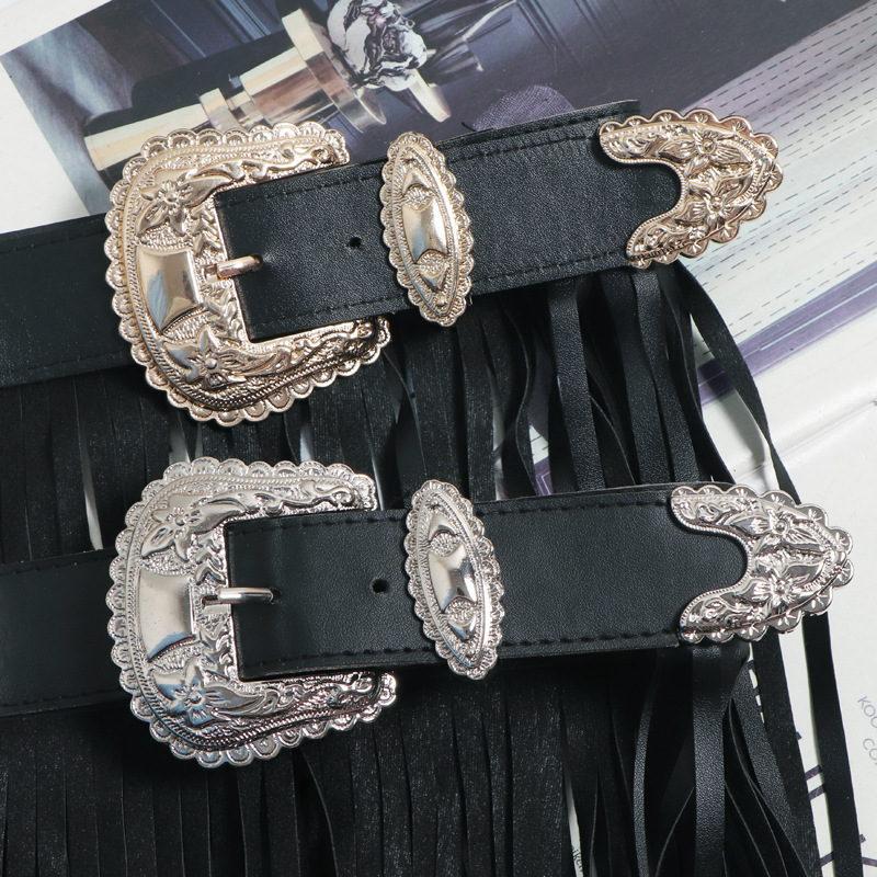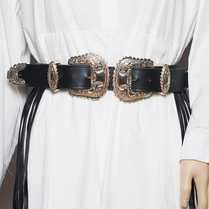 국경 간 유럽과 미국의 넓은 허리 조각 더블 버클 술 벨트 여성 성격 트렌드 힙합 펑크 스타일 착용 액세서리