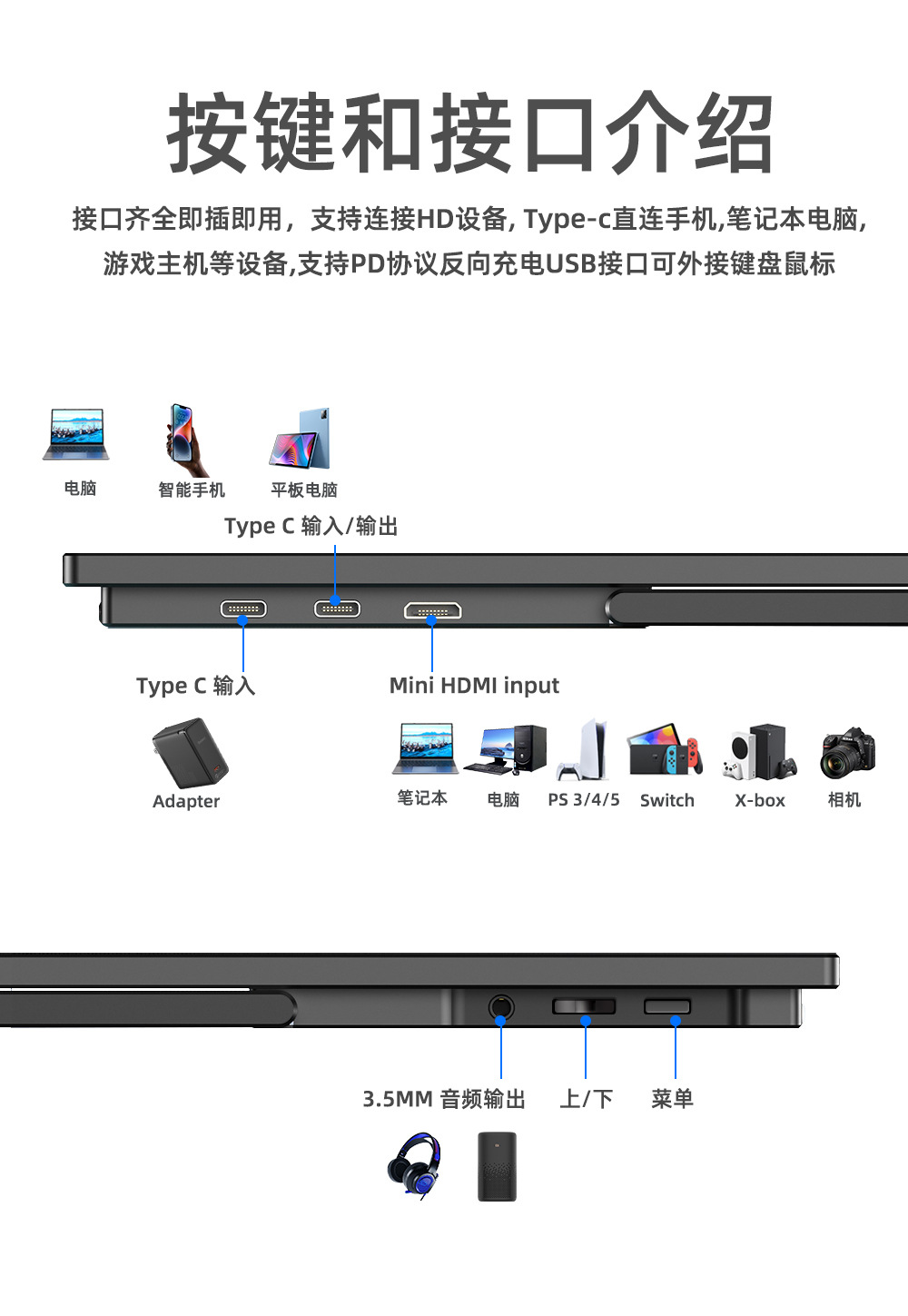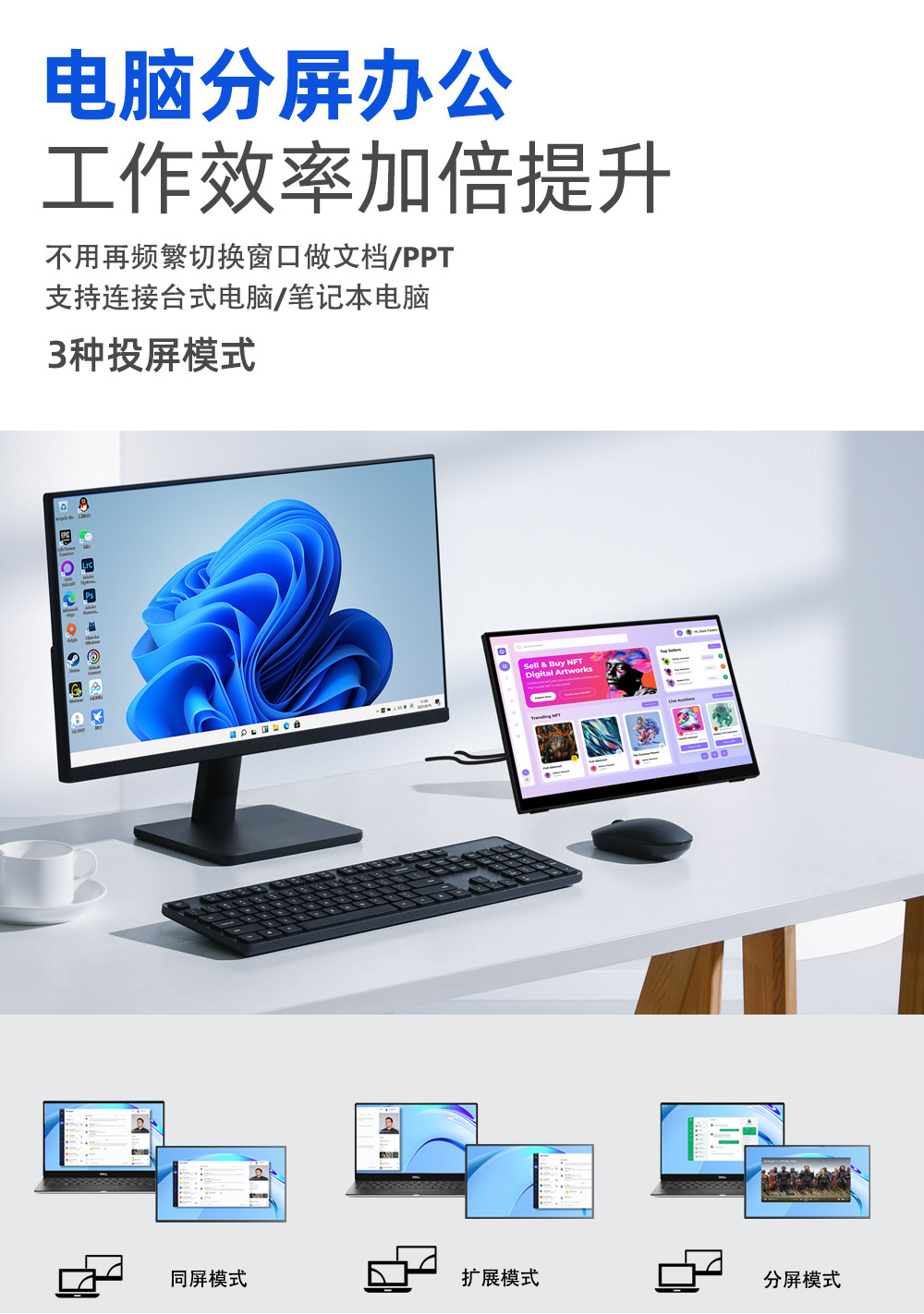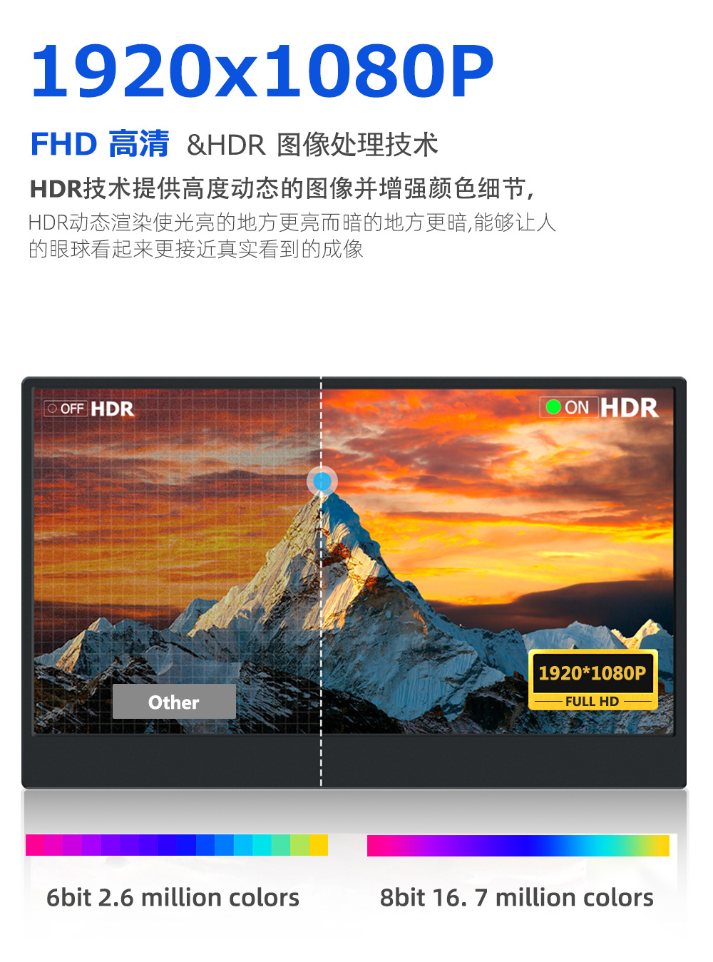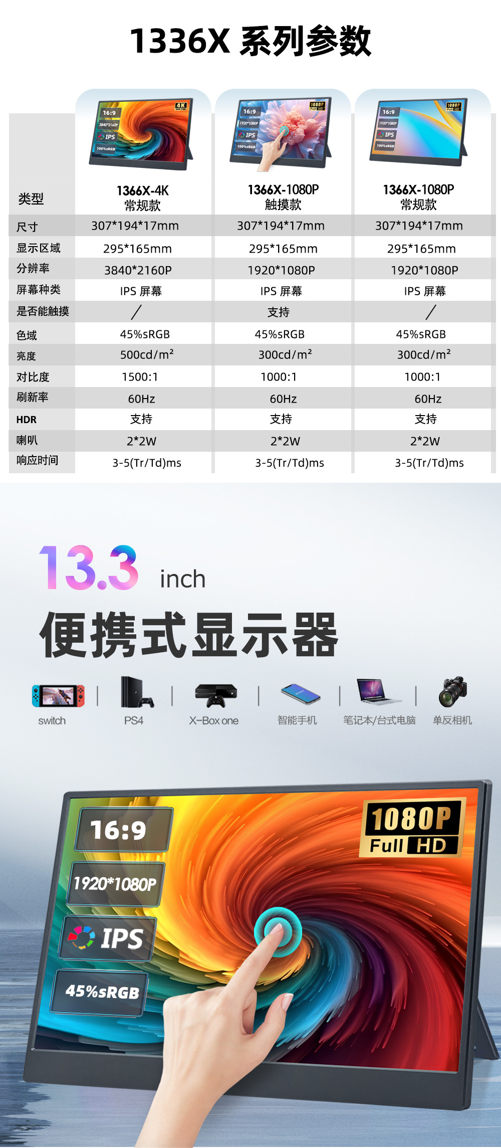 13.3inch 스탠드 포함 1080P HD IPS 스크린, 남자친구를 위한 얇고 가벼운 HDR 휴대용 모니터