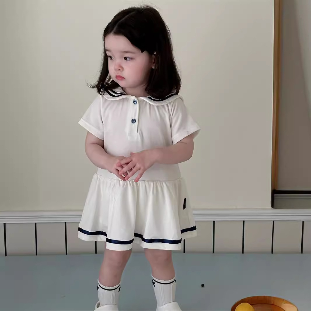 여아 반팔 캠퍼스 스타일 원피스 얇은 한국 스타일 아동복 아기 2026 여름 아동용 바디수트 스커트 여름옷스토어 가기