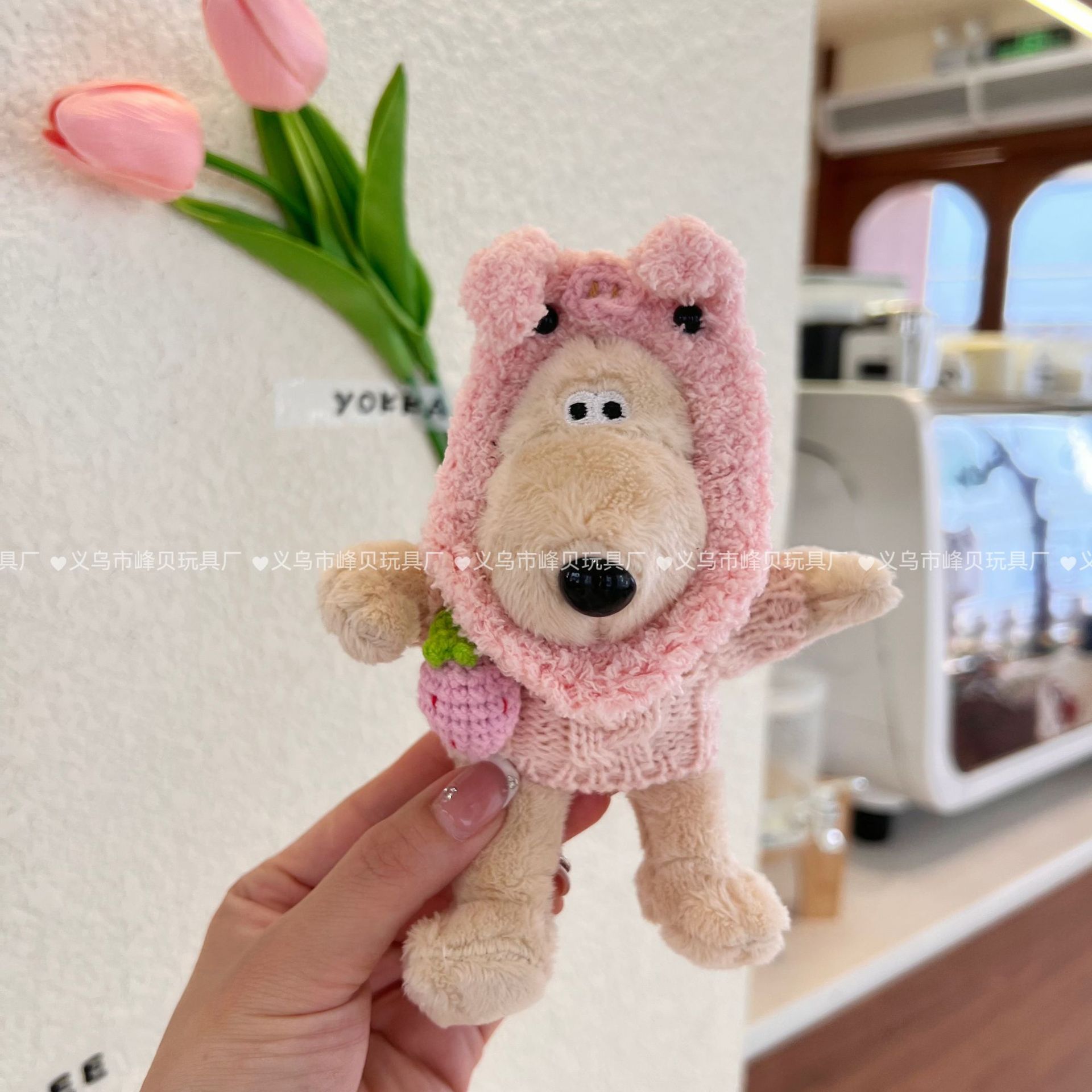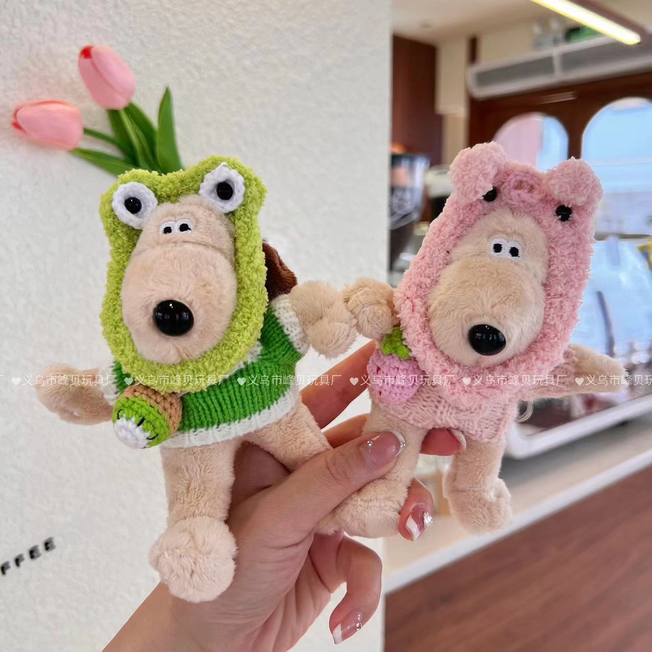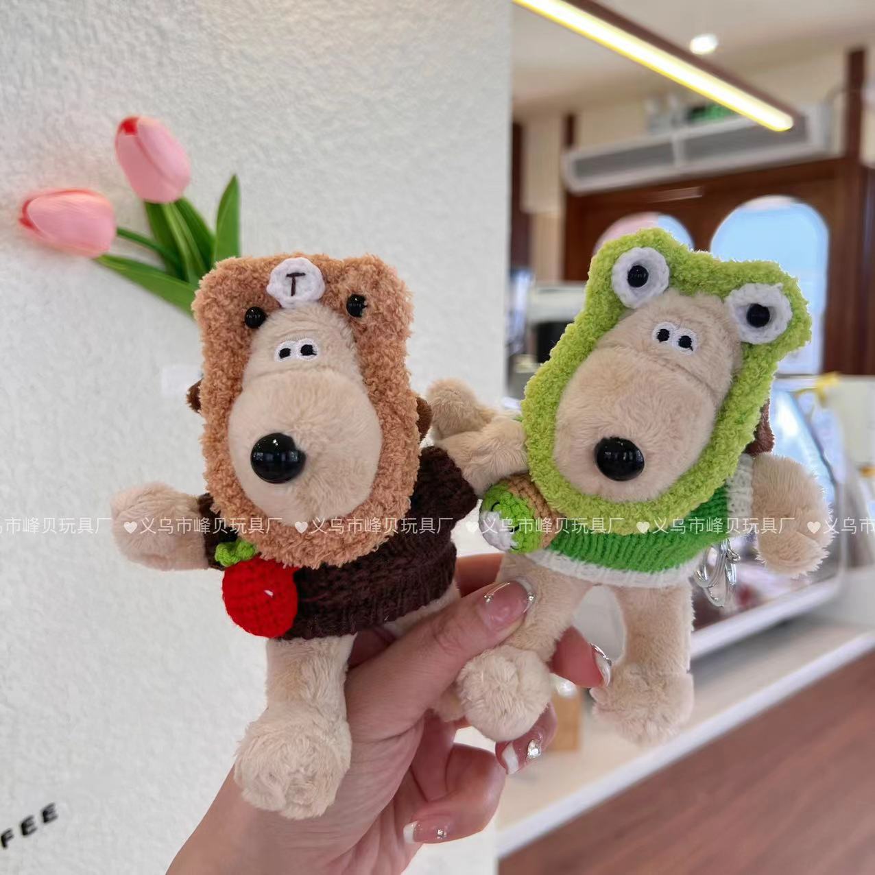 개구리 모자 핸드독 스웨터 화이트 도트 활 펜던트 드레싱 인형 휴대 전화 백 클립 개 키 체인 만화스토어 가기