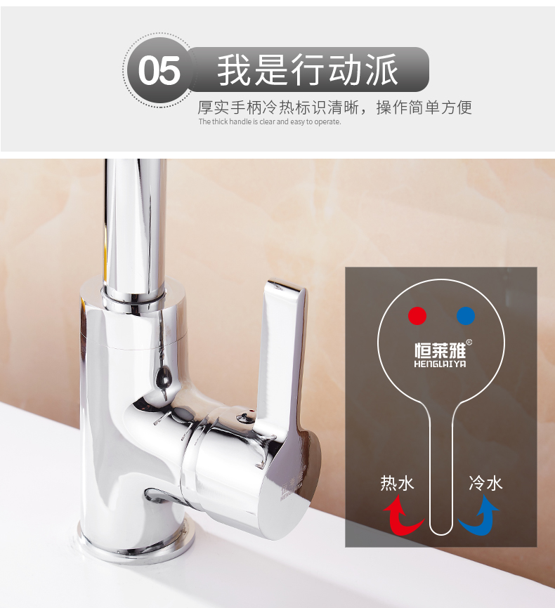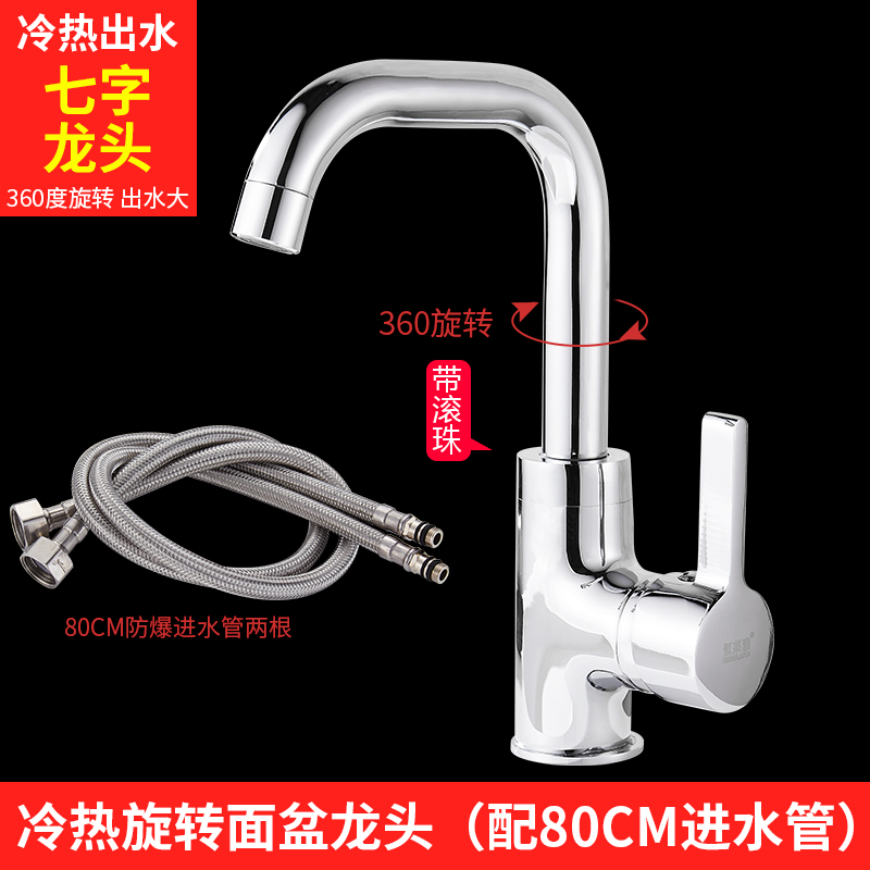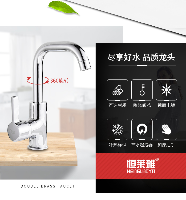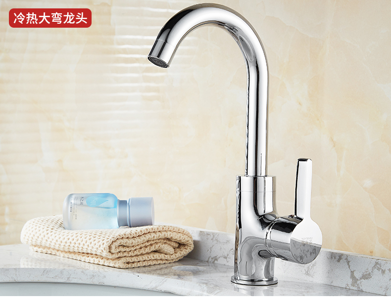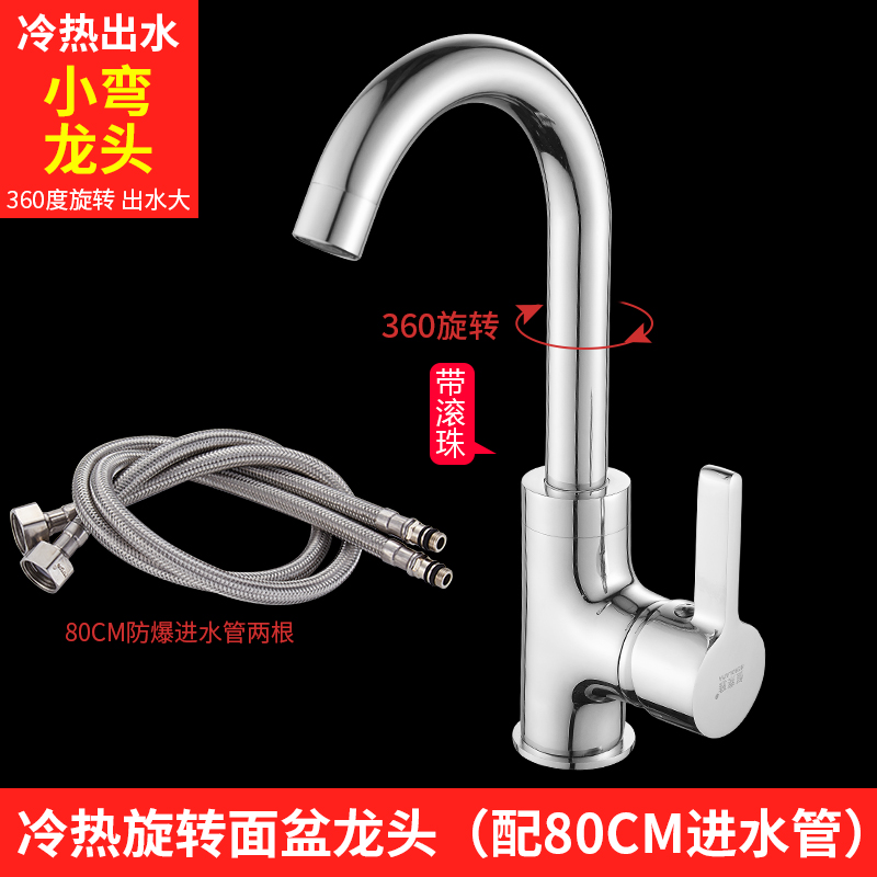 모든 구리 회전 식 분지 수도꼭지 욕실 뜨겁고 차가운 수도꼭지 세면대 분지 수도꼭지 단일 구멍