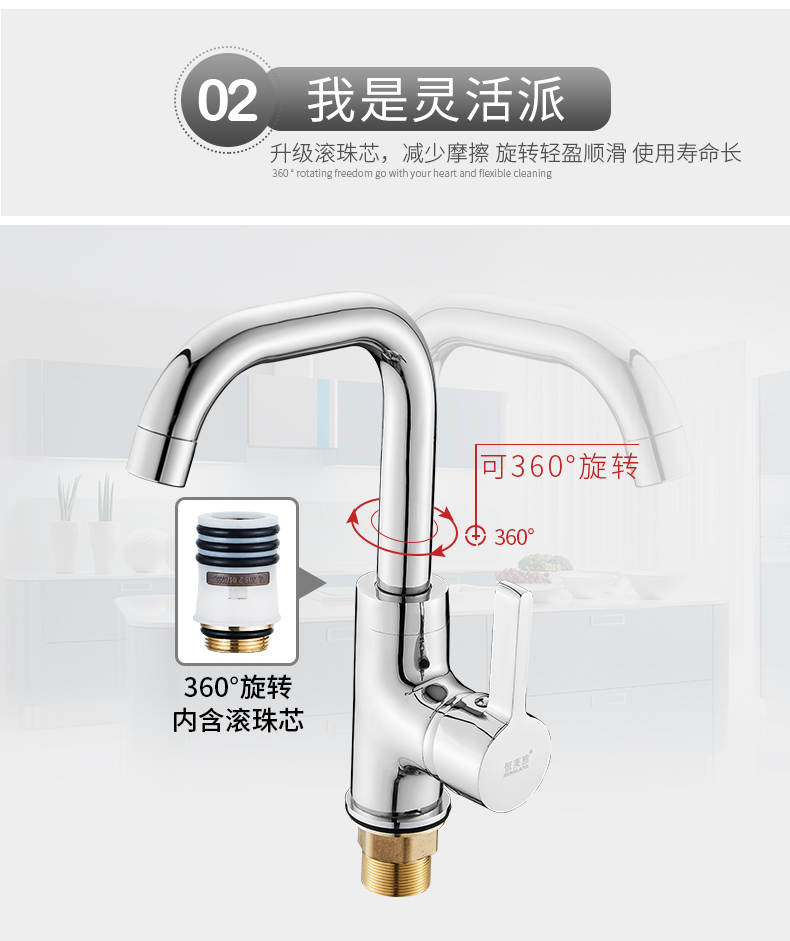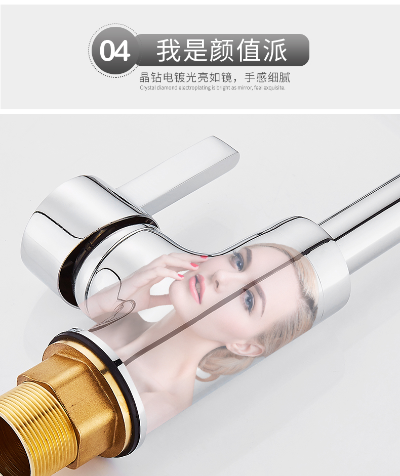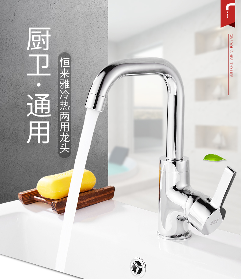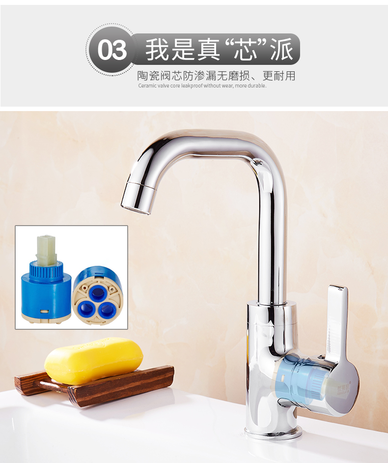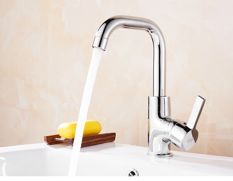모든 구리 회전 식 분지 수도꼭지 욕실 뜨겁고 차가운 수도꼭지 세면대 분지 수도꼭지 단일 구멍