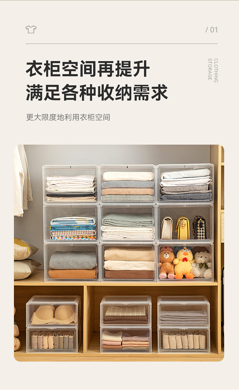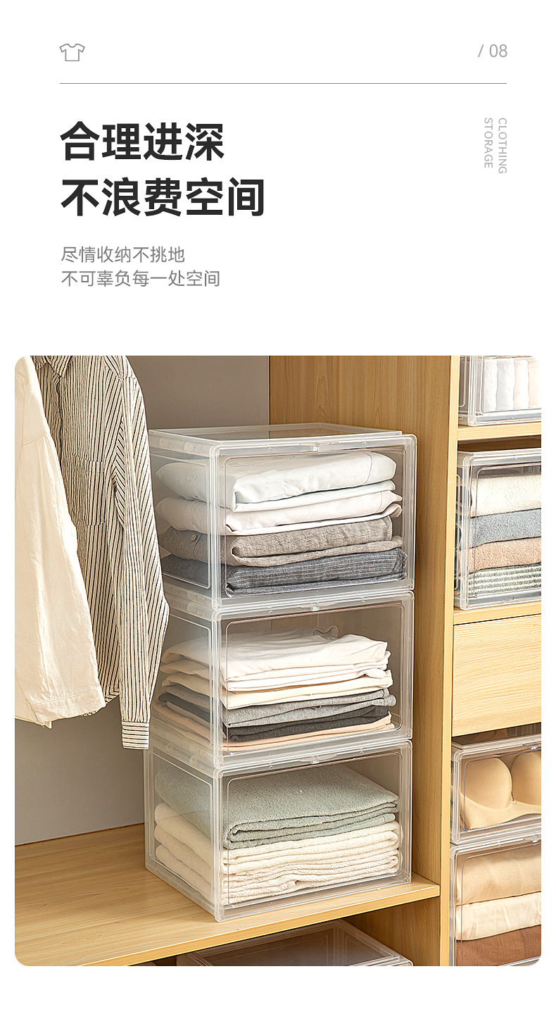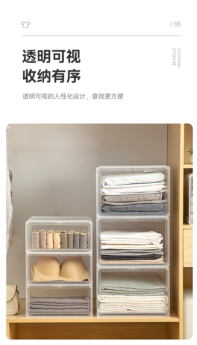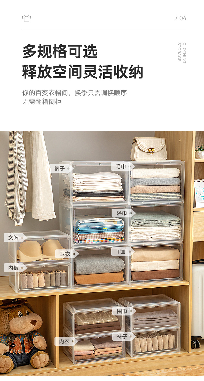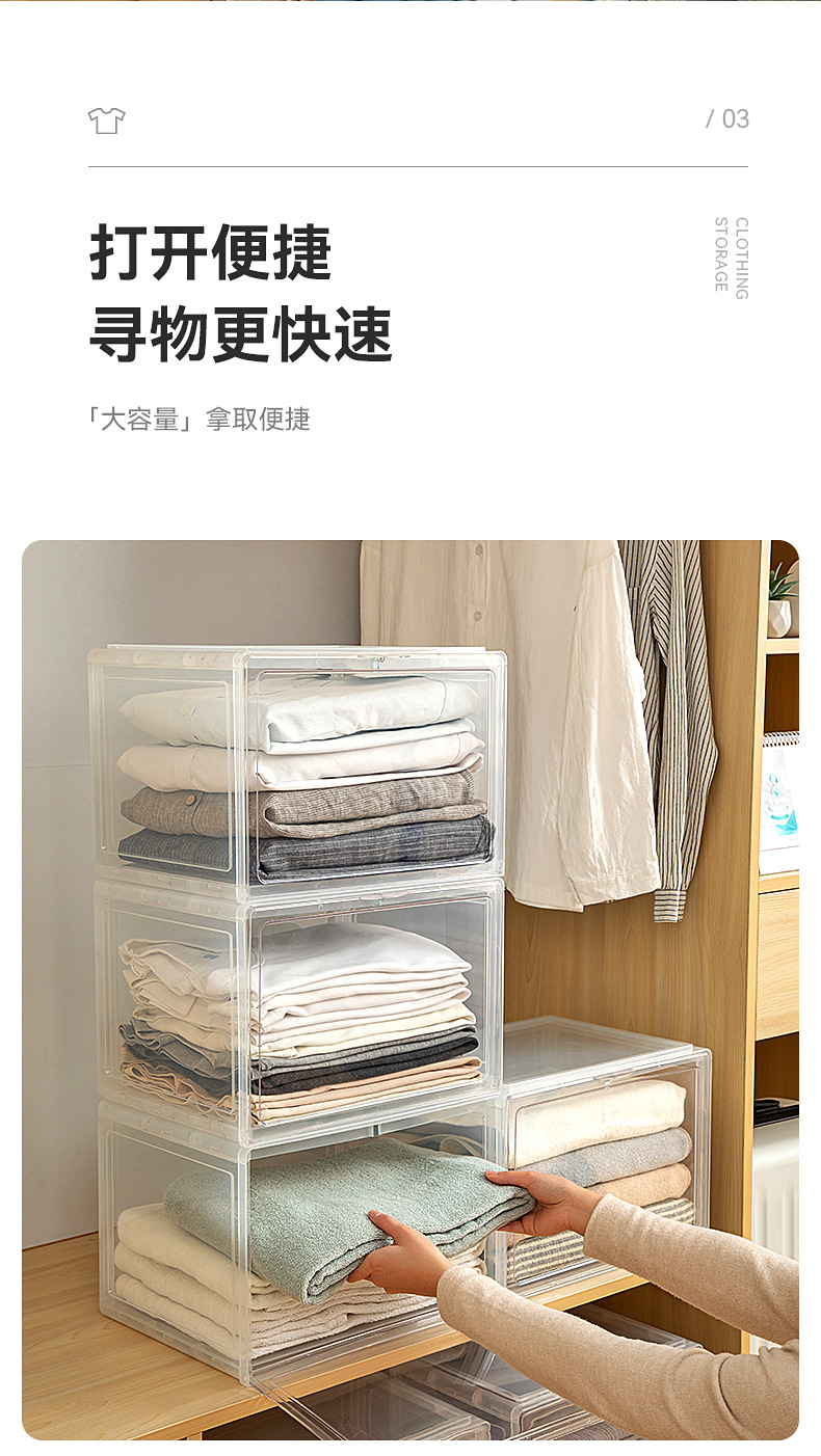 옷장 보관 상자 전면 개방 플라스틱 가정용 옷 옷 속옷 보관 상자 데스크탑 보관 상자스토어 가기