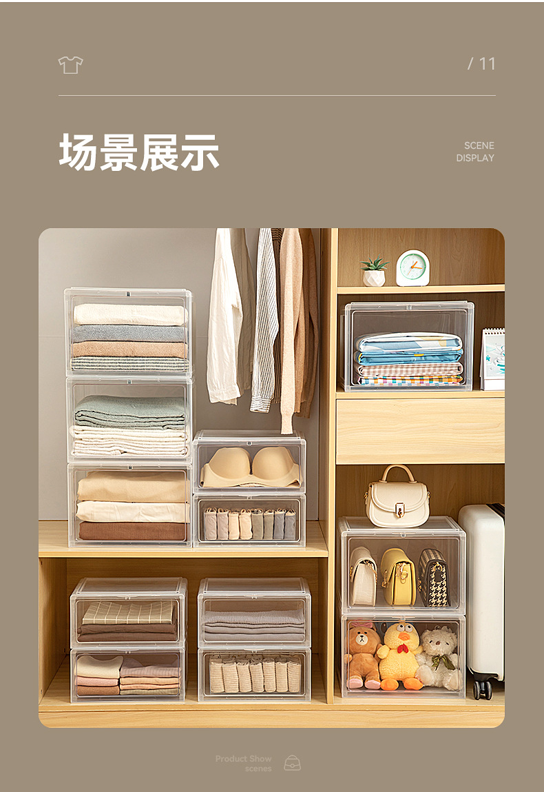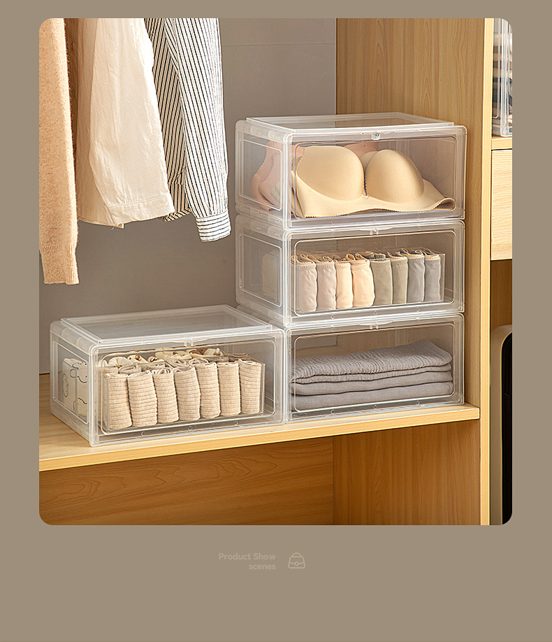 옷장 보관 상자 전면 개방 플라스틱 가정용 옷 옷 속옷 보관 상자 데스크탑 보관 상자