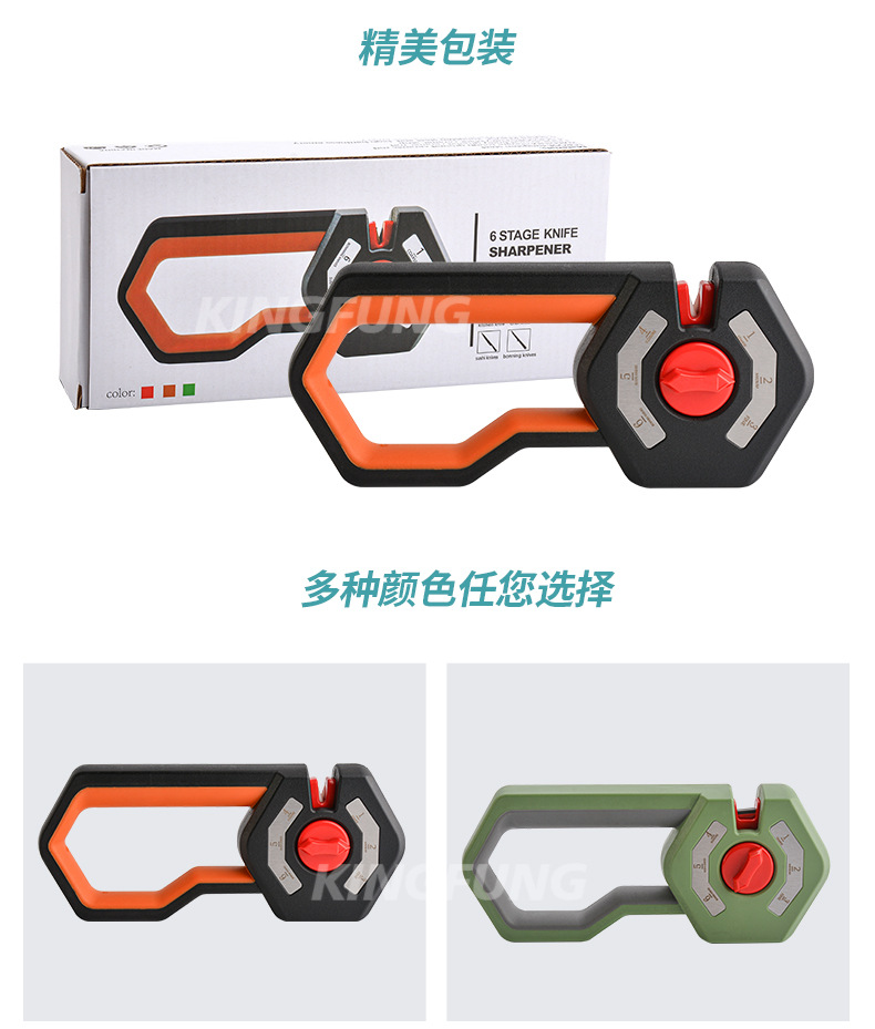 使用方法:按照不同种类刀和锋利度,转动卡位,选择合适的卡口磨刀。