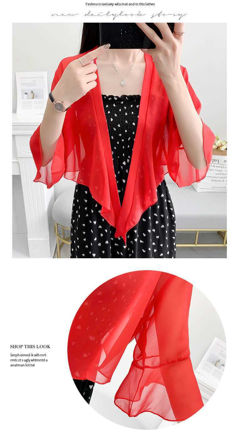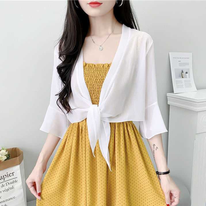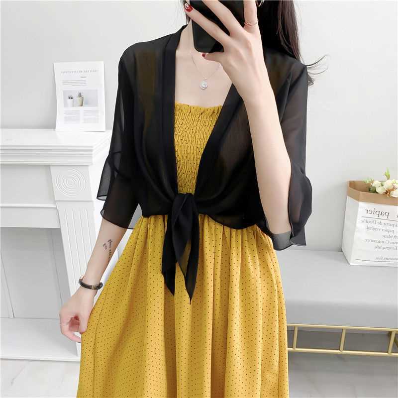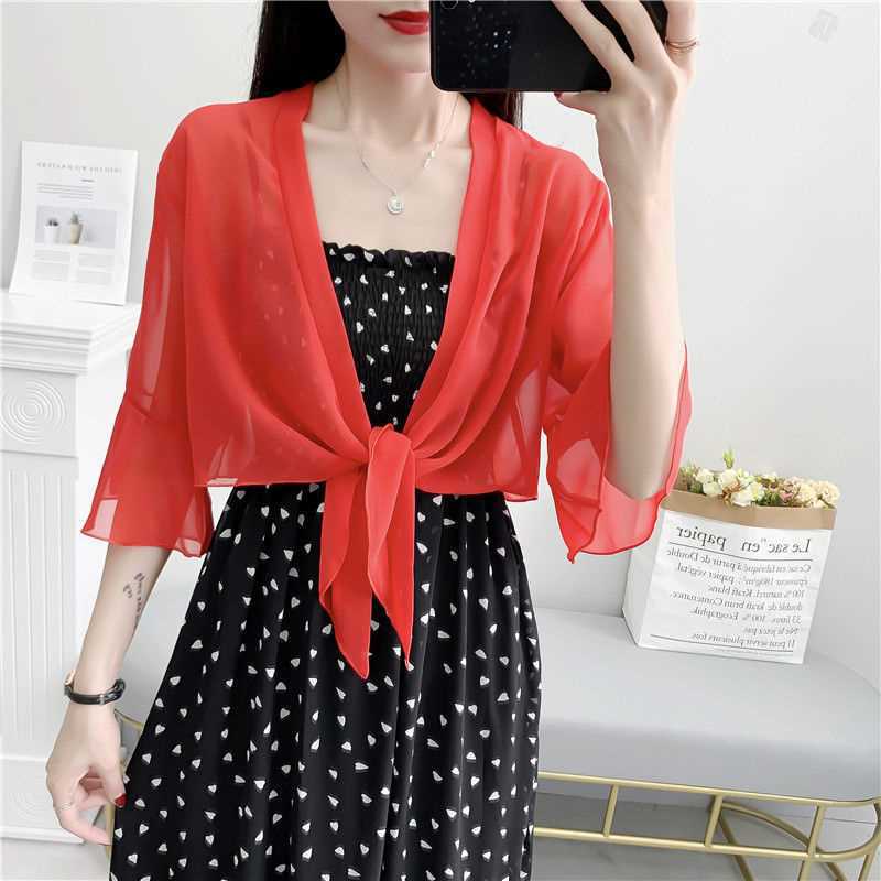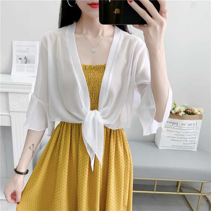 시폰 코트 여성용 여름 짧은 아우터 슬링 스커트와 얇은 카디건 작은 목도리 레이스 선스크린 의류스토어 가기